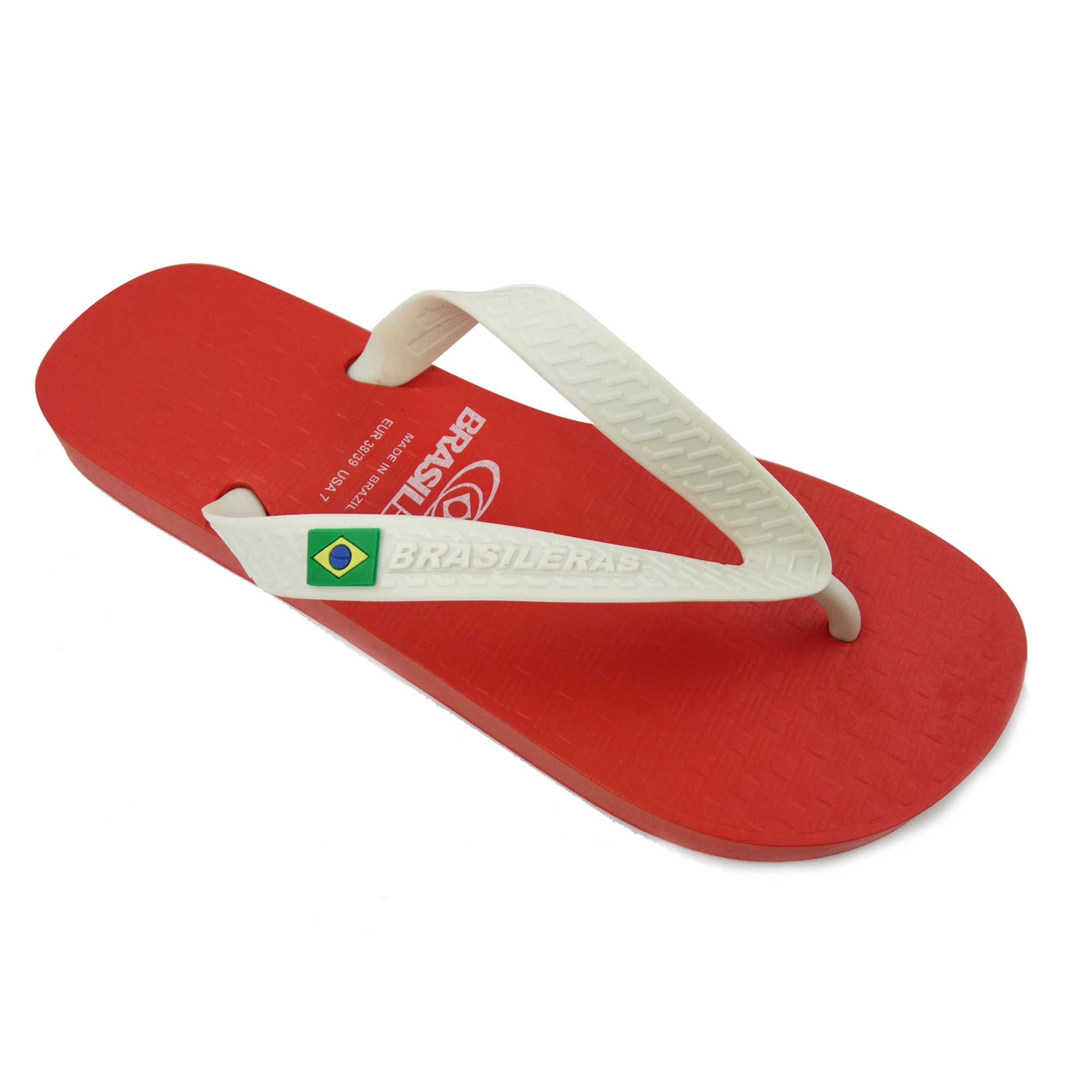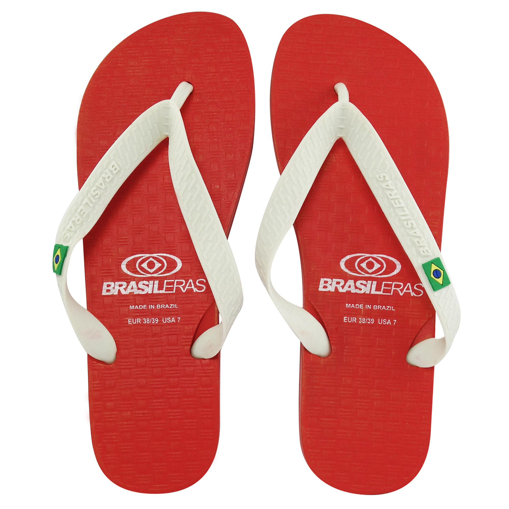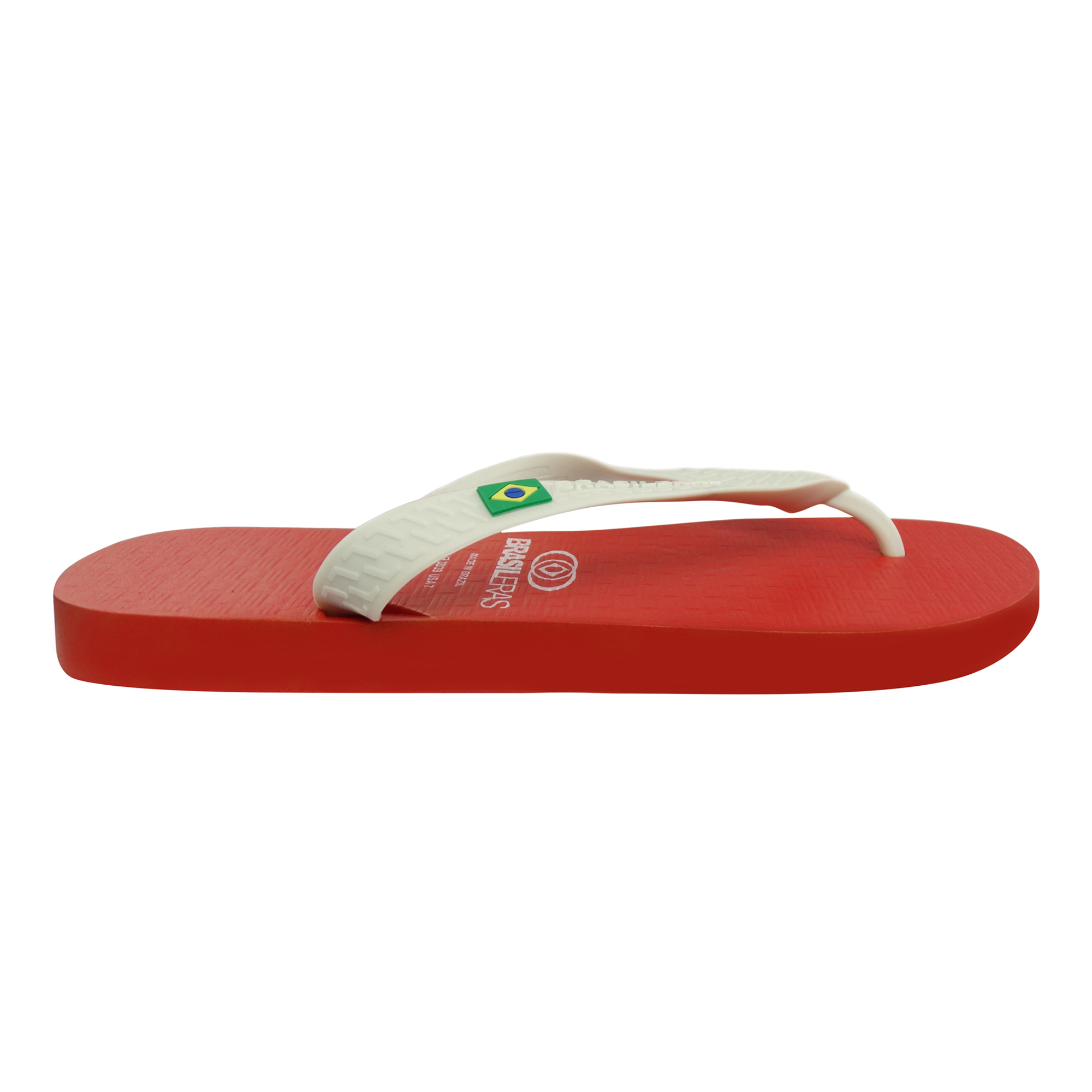 Tongs de plage brasileras unisexes rouges et blanches avec semelles en caoutchouc antidérapantes.