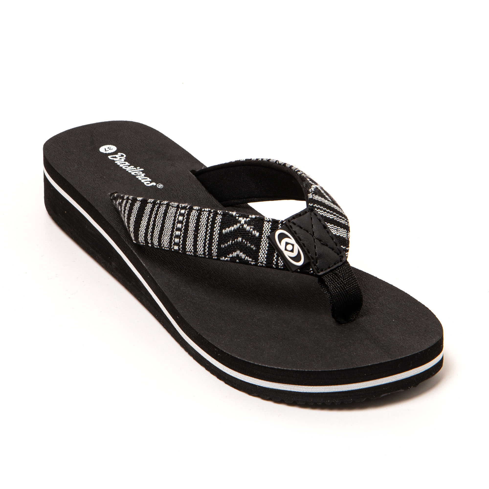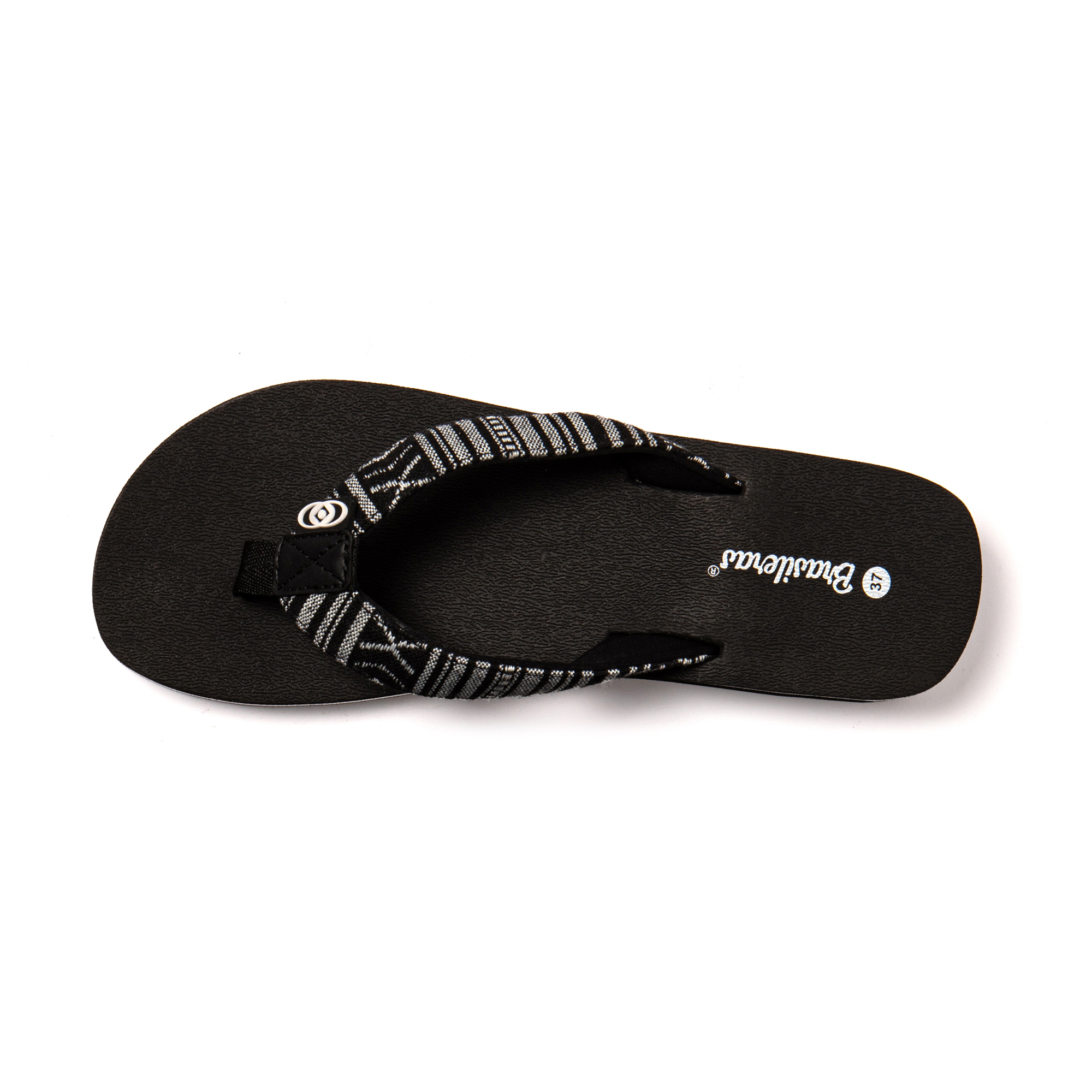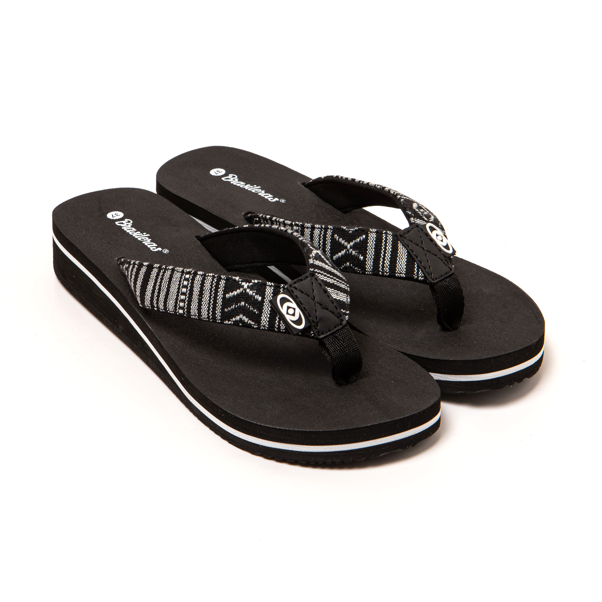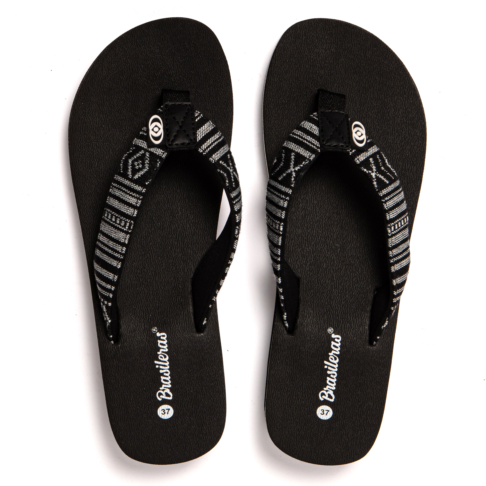 Plongez dans l'été avec style et confort avec nos tongs pour femme de la marque Brasileras en couleur noire ! - Lanières douces en textile synthétique avec motif ethnique, ajoutant une touche d'élégance et d'originalité à votre look estival. - Semelle en coin en EVA douce et confortable offrant un soutien parfait pour vos pieds toute la journée. - Semelle en gomme antidérapante pour une marche en toute sécurité, de la plage à la ville. - Design tendance et décontracté qui ne se démode jamais, idéal pour le printemps et l'été. - Ajoutez une touche de fraîcheur et de style à vos tenues estivales avec nos tongs Brasileras. Procurez-vous les vôtres dès maintenant et marchez avec confiance et style lors de vos journées enBrasileras Soleillées !