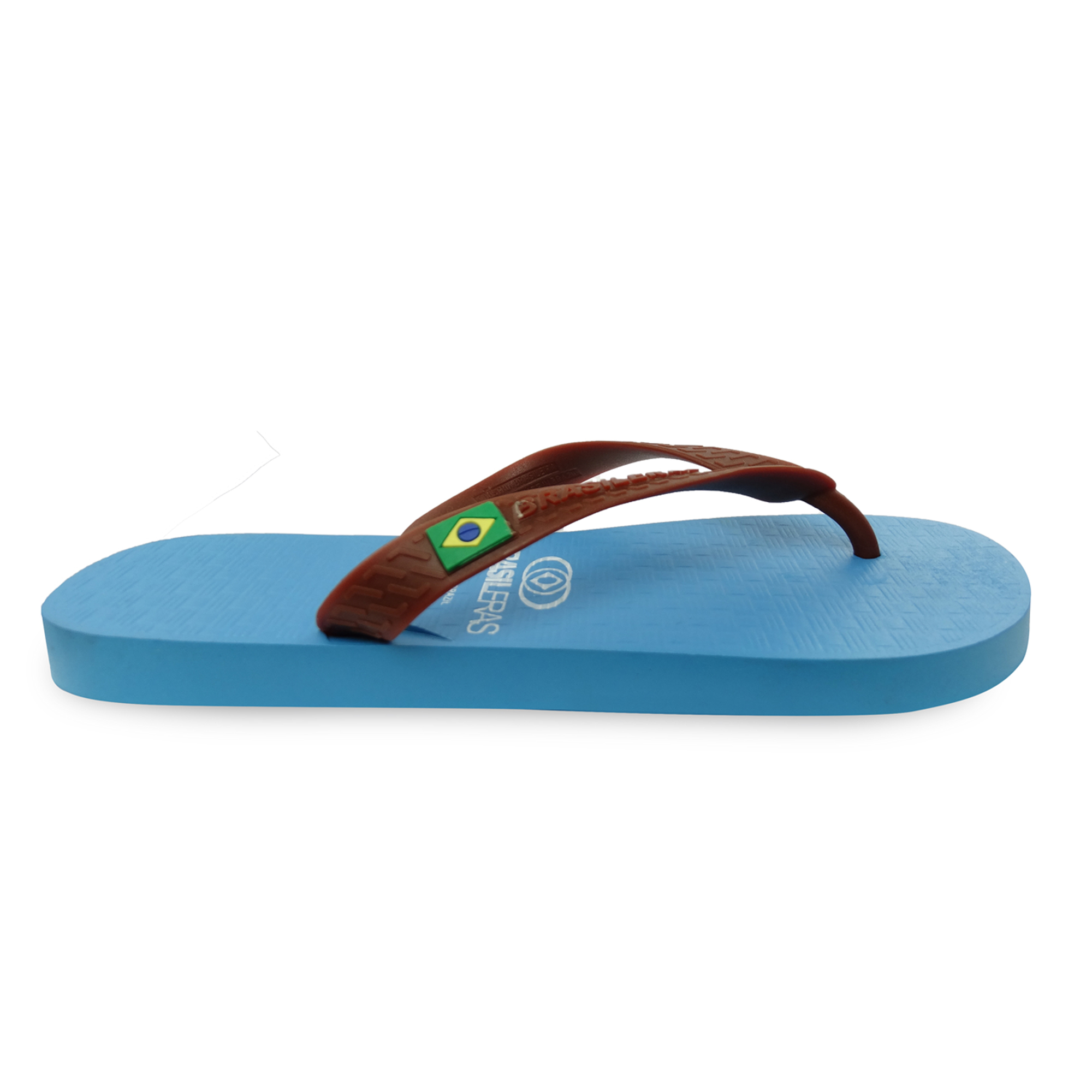 | Libellé | Tongs de plage unisexes en bleu clair et marron avec semelles en gomme antidérapantes. |