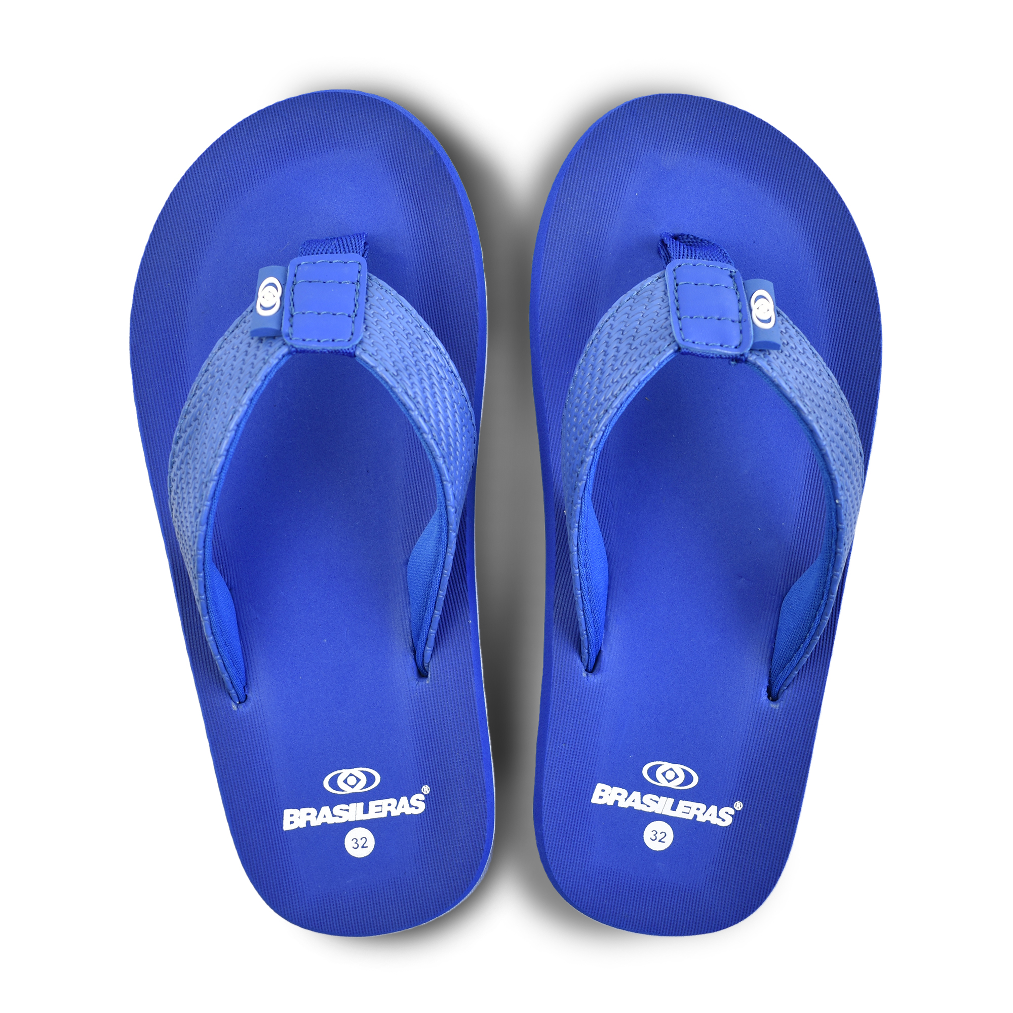 Tongs de plage unisexes en bleu royal avec semelles en gomme.