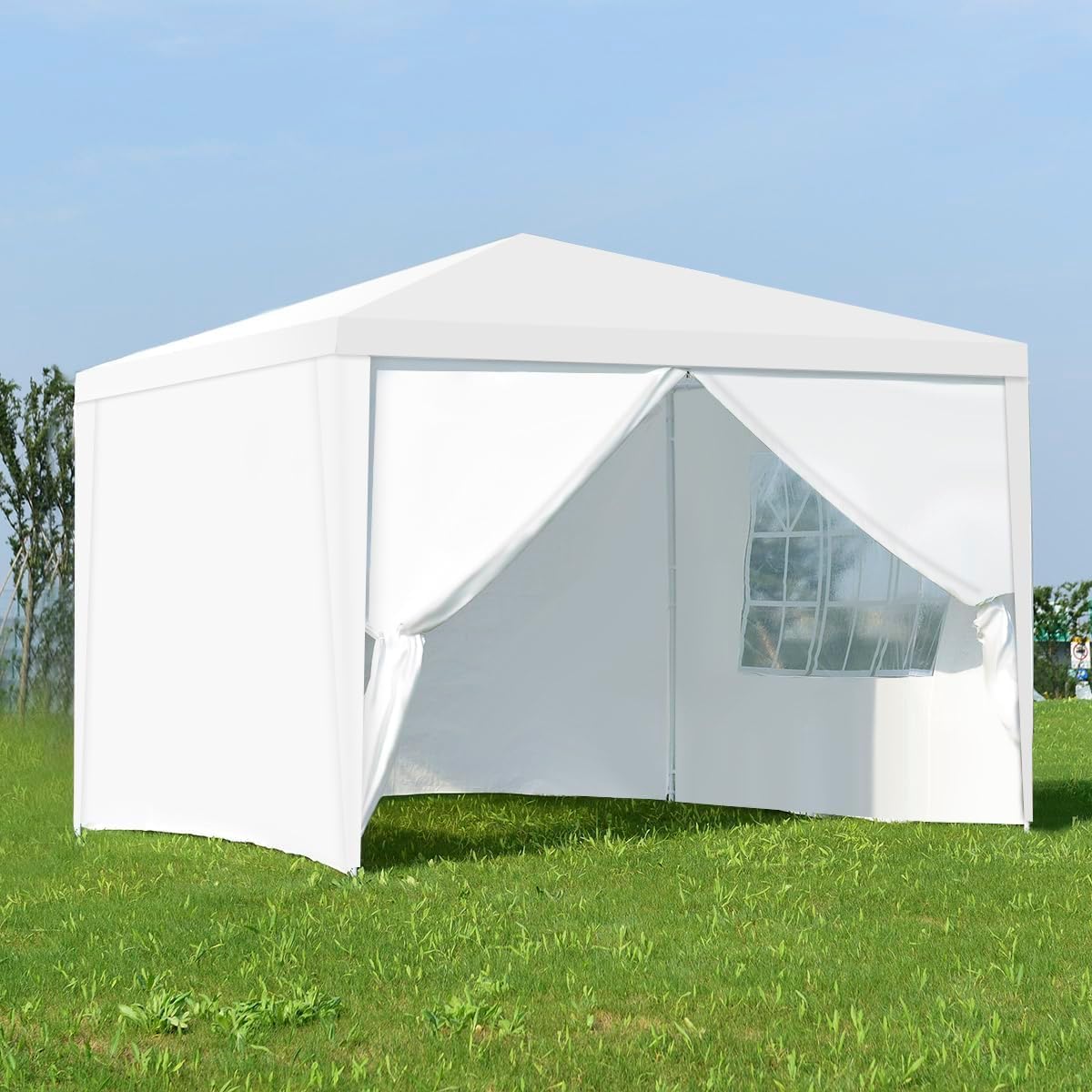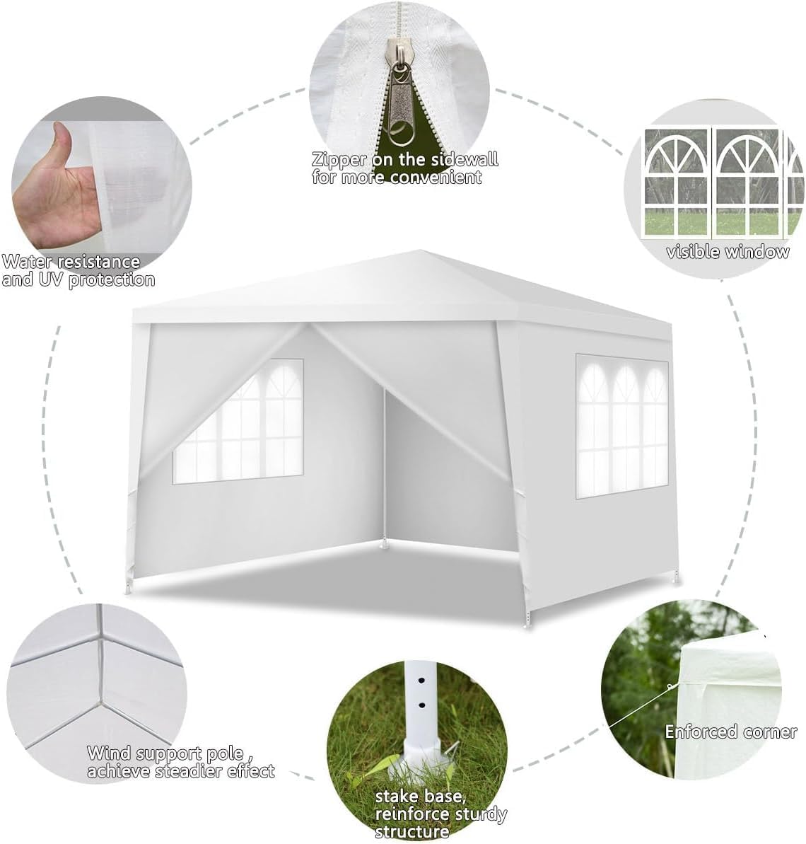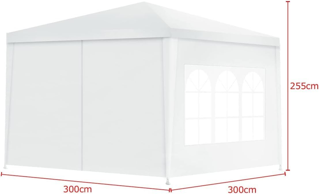 Ce gazebo spacieux de 3m x 3m est conçu pour une utilisation en extérieur. Il est idéal pour les jardins, les mariages, les terrasses, les rassemblements, les fêtes. Sa construction robuste en tubes d'acier enduits, ses piquets de sol en métal et ses cordes résistantes au vent lui confèrent une grande stabilité. La tente pliable est dotée de deux fenêtres sur les deux côtés pour une meilleure pénétration de la lumière. En outre, elle peut être montée et démontée rapidement, ce qui vous permet d'économiser du temps et des efforts. Emportez-la chez vous si elle vous plaît !