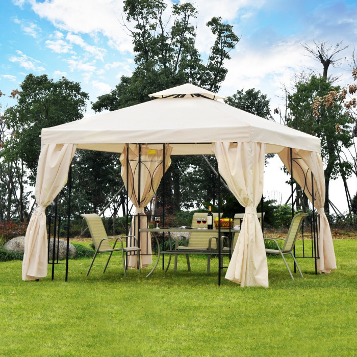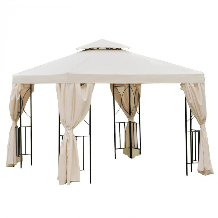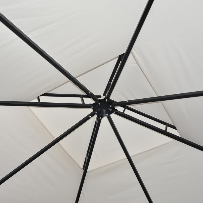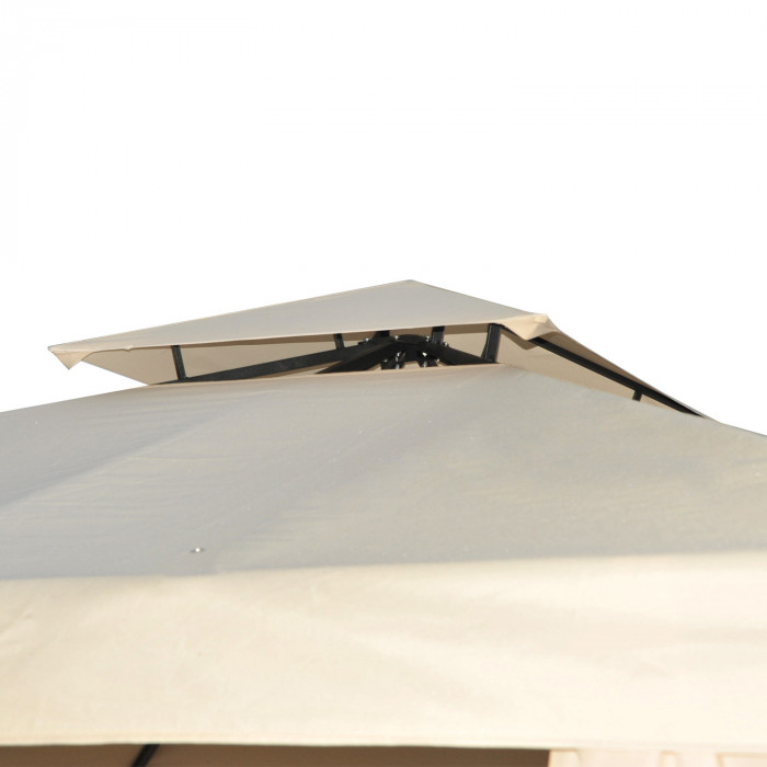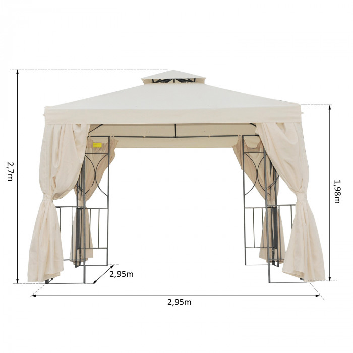Profitez de votre jardin sans craindre les fortes chaleurs de l'été avec cette tonnelle barnum CORA, qui vous est présentée par MYCOCOONING ! Avec ses quatre toiles latérales en polyester imperméabilisé, ce pavillon au style coloniale vous protégera efficacement des rayons UV. Perforée à 8 niveaux pour éviter toute formation de poche deau, la toile résistera aux pluies. Les 8 entretoises supportant le toit assurent stabilité et rigidité. Son double toit à fonction de ventilation vous permettra de passer du temps dehors même en cas de hautes températures. Parfait pour vos fêtes à l'extérieur, ou pour simplement profiter du beau temps ! Caractéristiques : Couleurs principales : beige, noir Matériau toile : polyester imperméabilisé haute densité 160 g/m² Matériau armature : métal époxy anticorrosion Système dattache velcro à larmature Dimensions totales : 2,95L x 2,95l x 2,7H m Hauteur avant-toit : 1,98 m Accessoires fournis : 12 piquets dancrage au sol et 4 cordons de serrage