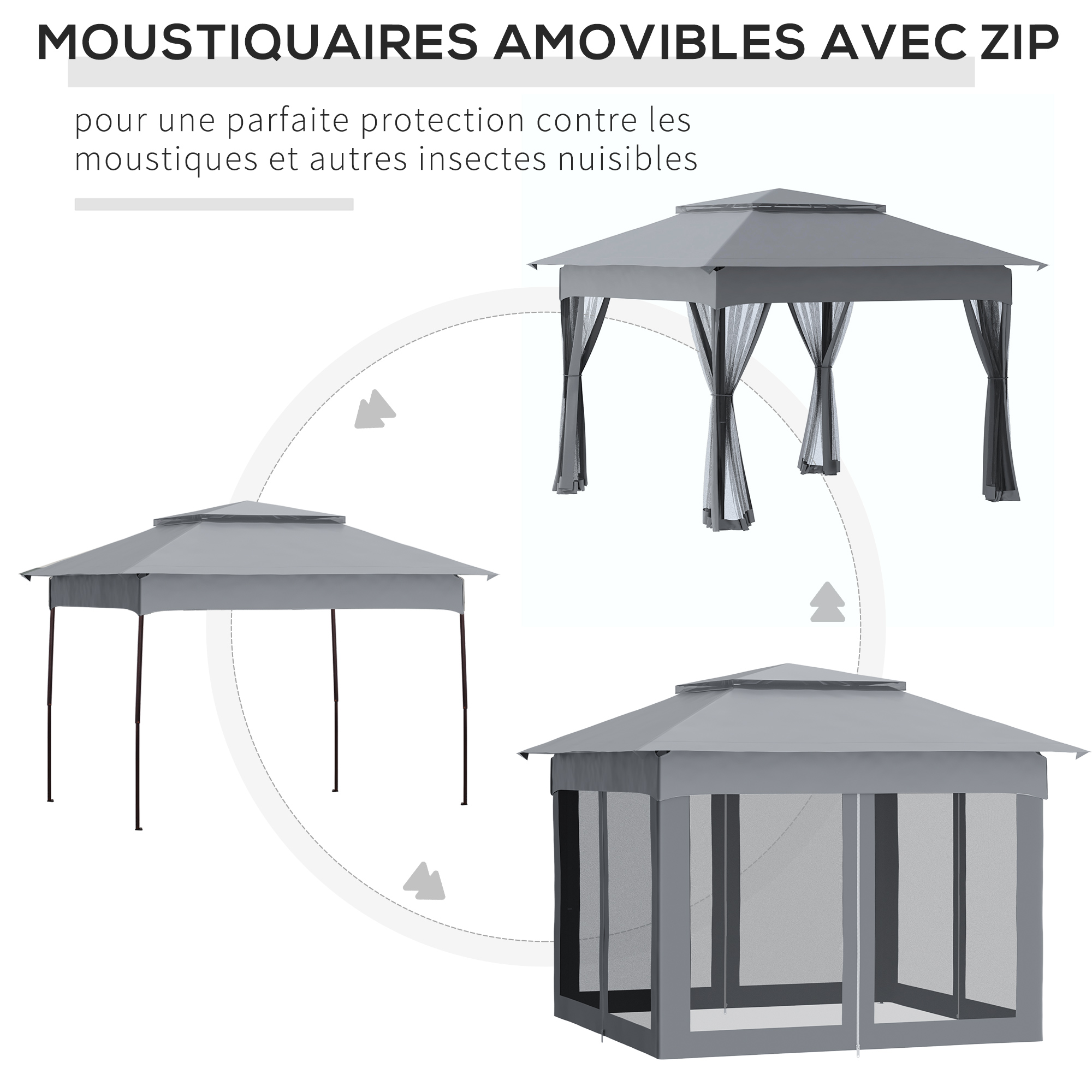 - 4 moustiquaires amovibles avec zip et cordons d'attache pour une parfaite protection contre les moustiques et autres insectes nuisibles