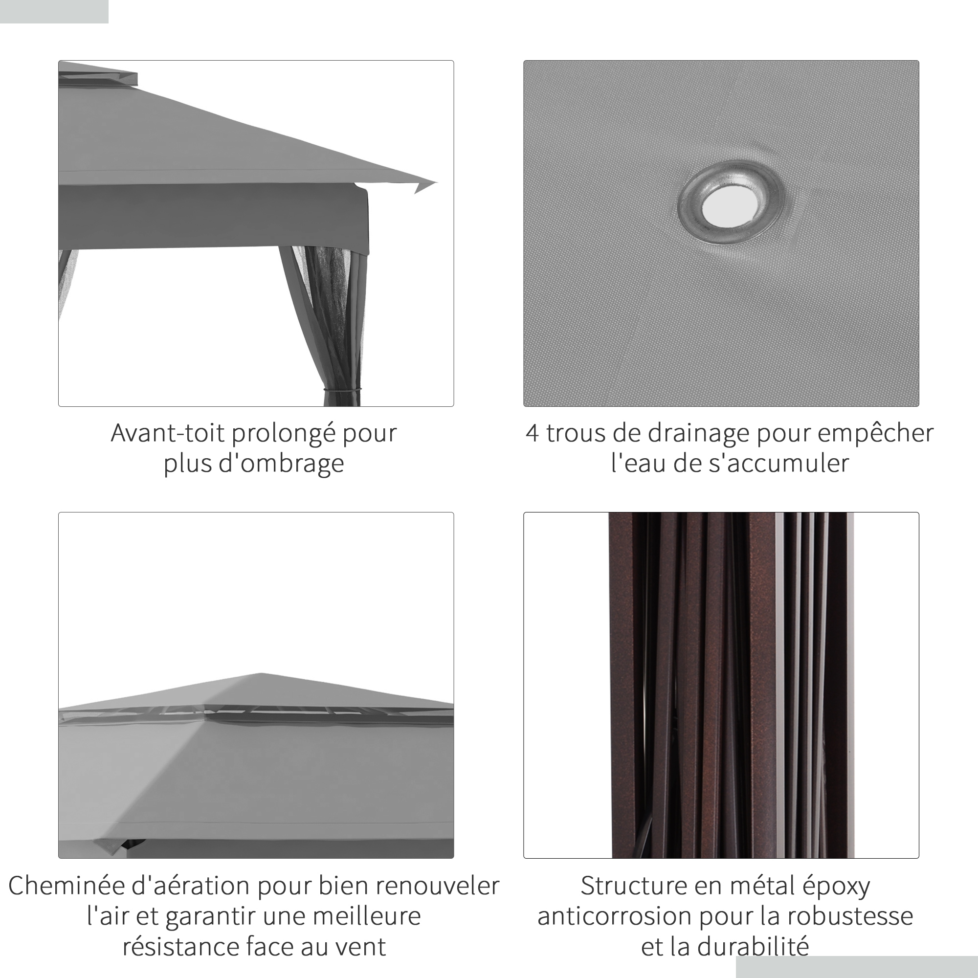 | Libellé | Tonnelle barnum de jardin pop-up pliant 3,25L x 3,25l x 2,65H m acier polyester moustiquaires + sac de transport gris |