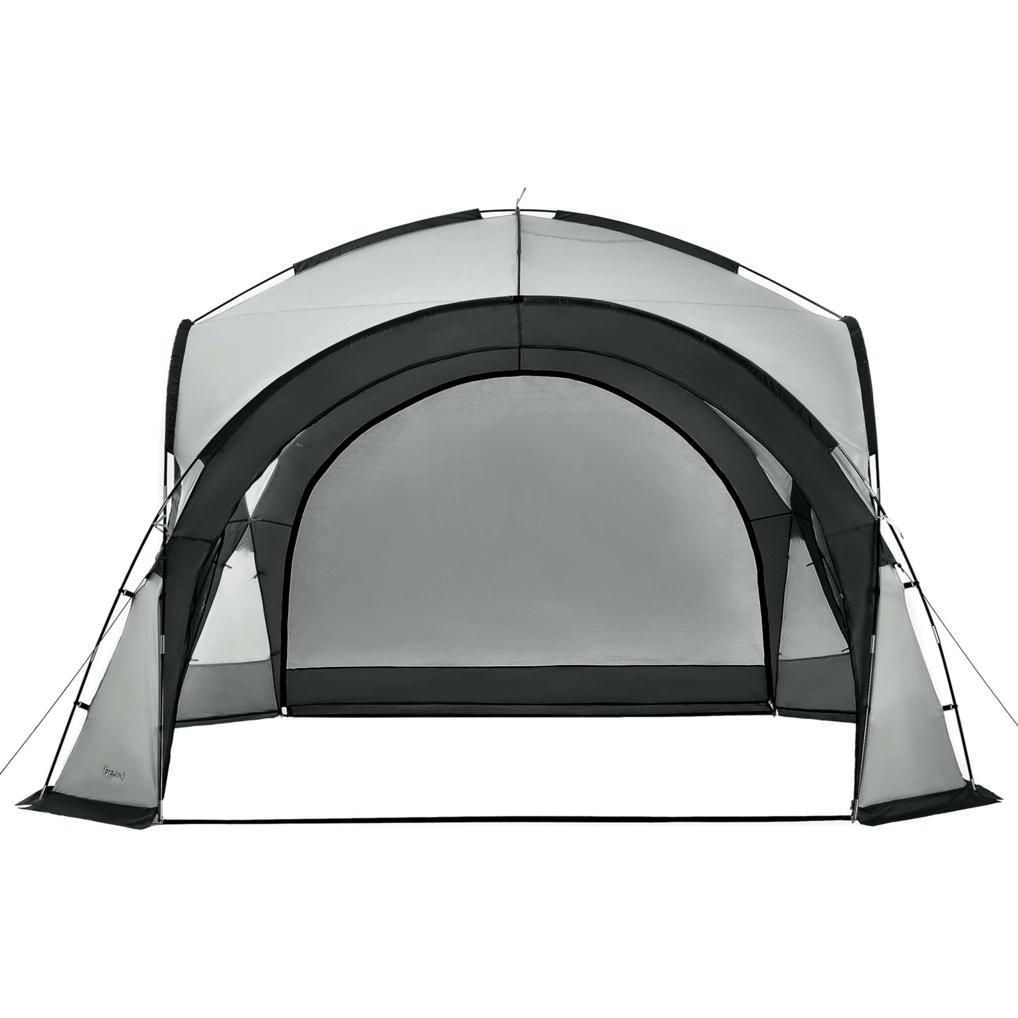 Tonnelle de camping Grästorp avec guirlande à 96 LED 345 x 345 x 247 cm gris foncé [pro.tec]