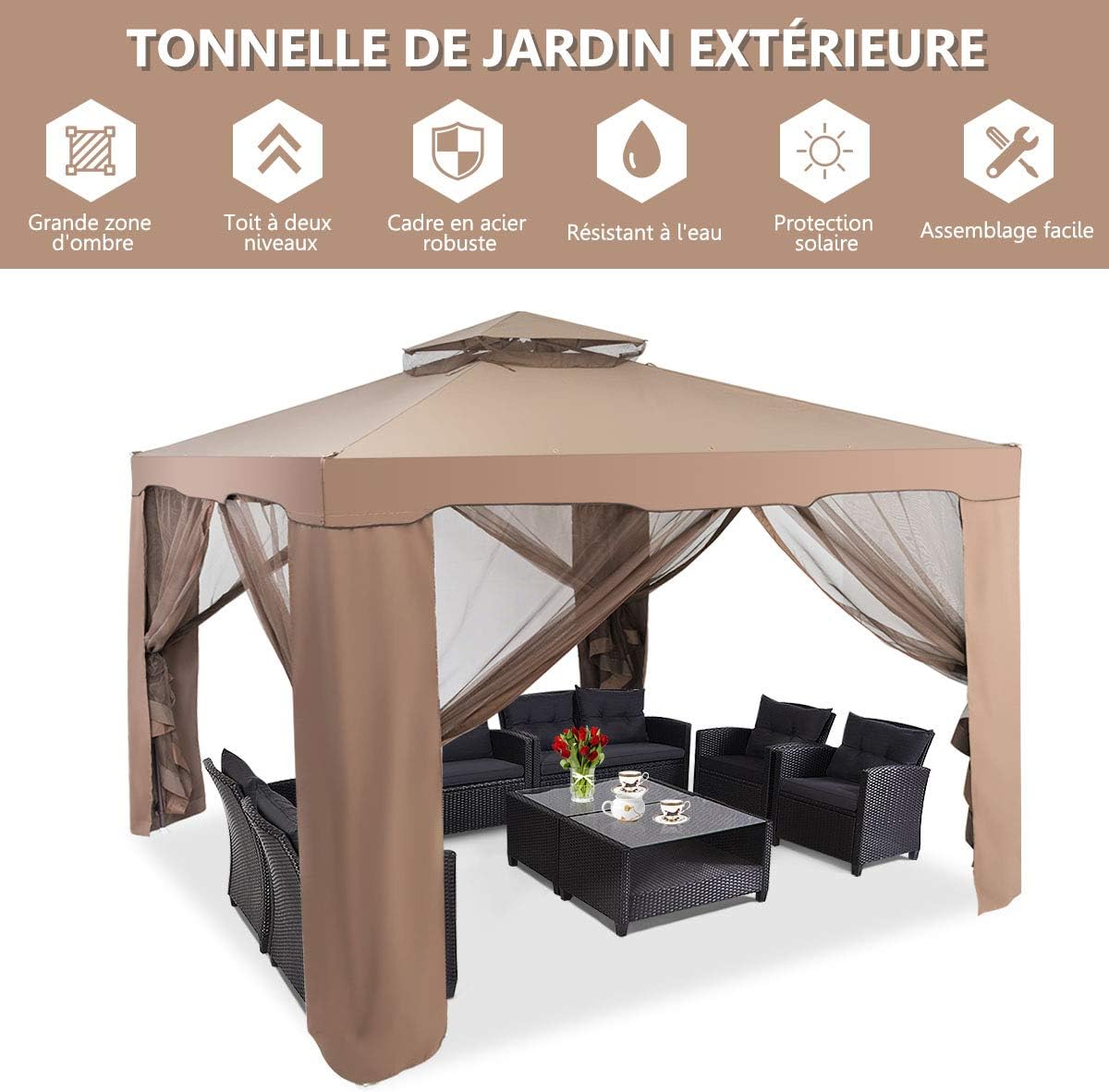 | Libellé | Tonnelle de jardin en polyester anti UV, tente réception double toit avec 4 moustiquaires zippées (Brun) |