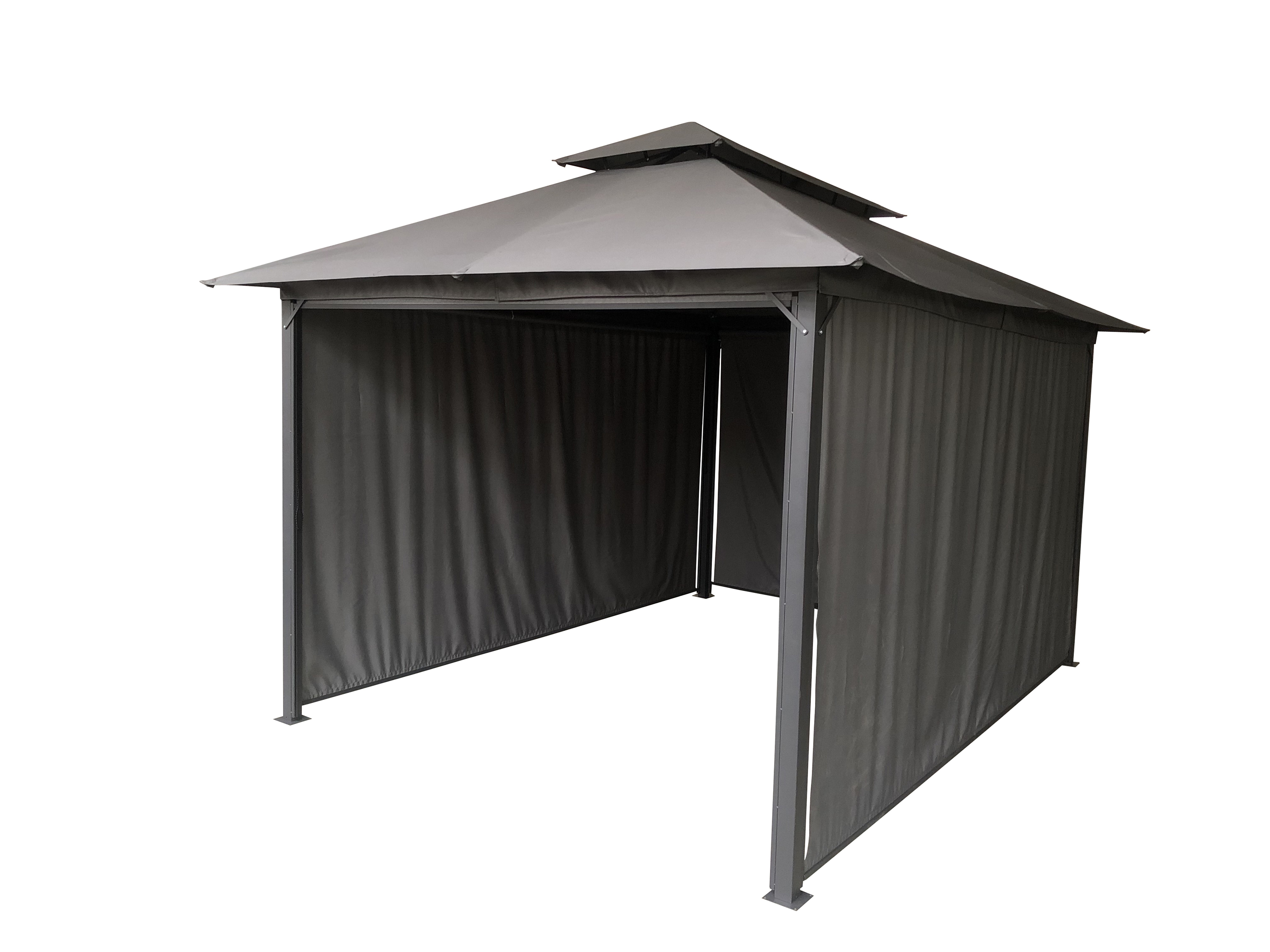 | Libellé | Tonnelle de jardin PAGODE 4x3m en métal coloris gris anthracite avec toit en toile et rideaux en polyester gris |