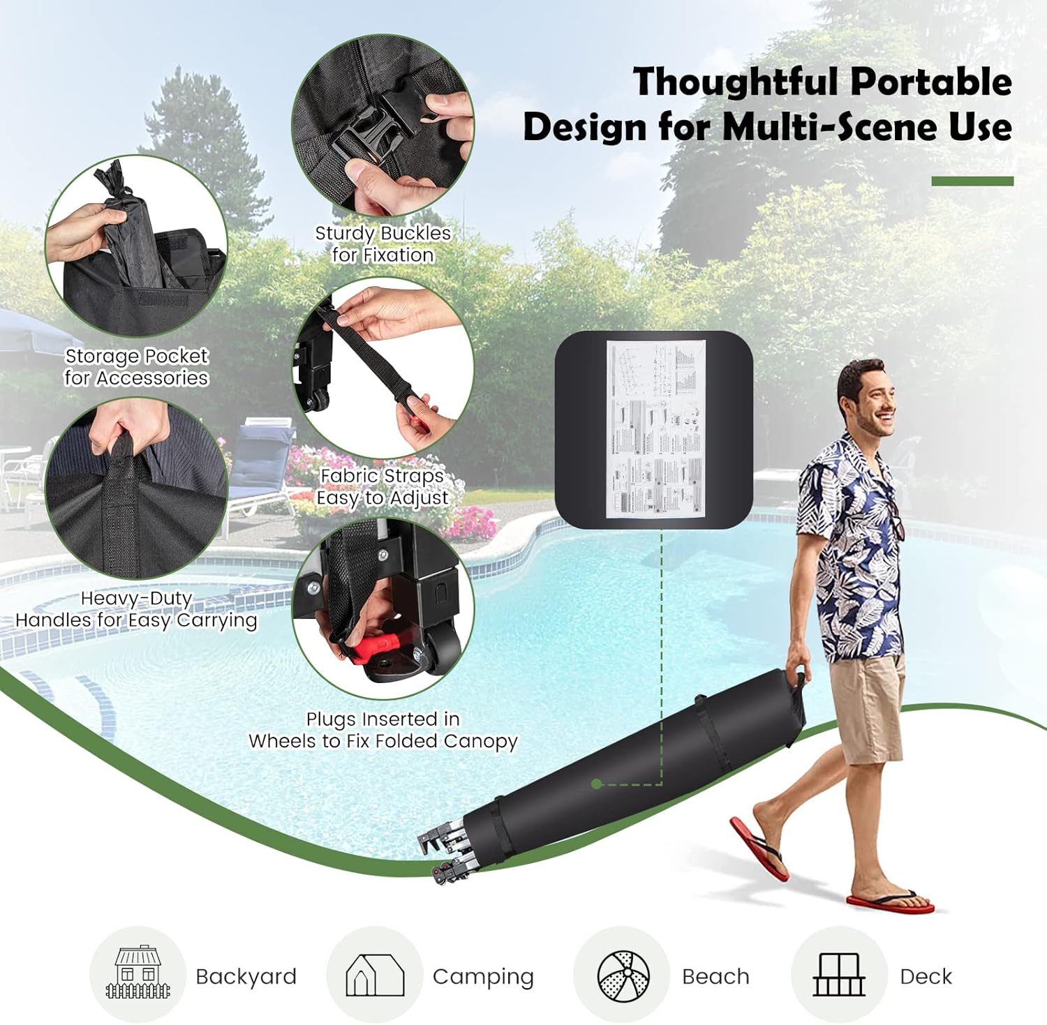 - Roulettes équipées & Déplacement facile : Notre tente de plage dispose de 6 pieds de support parmi lesquels 3 sont équipés de roulettes flexibles, vous pouvez donc la pousser facilement lors du déplacement. En outre, nous vous offrons un sac de transport pour vous apporter plus de commodités.