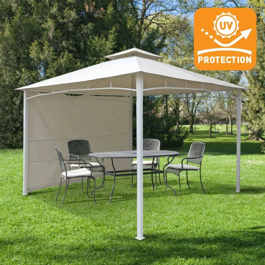 Découvrez notre gazebo de jardin pour terrasse et bar avec ouverture anti-UV, équipé d'une paroi latérale modulable pour une protection optimale contre le vent et le soleil. Versatile et élégant, ce gazebo est parfait aussi bien pour les jardins que pour les marchés et les foires. Avec sa structure robuste et ses poteaux de soutien de 60 x 60 mm, il offre une stabilité exceptionnelle. Le design pratique permet une utilisation polyvalente et son capuchon anti-vent en fait un choix sûr pour toute occasion. Profitez de la livraison gratuite.