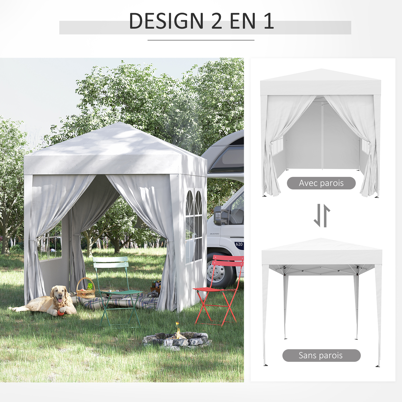 | Libellé | Tonnelle de jardin tente pliante barnum pop-up 2 x 2 m 4 parois latérales amovibles 2 fenêtres sac de transport pour camping |