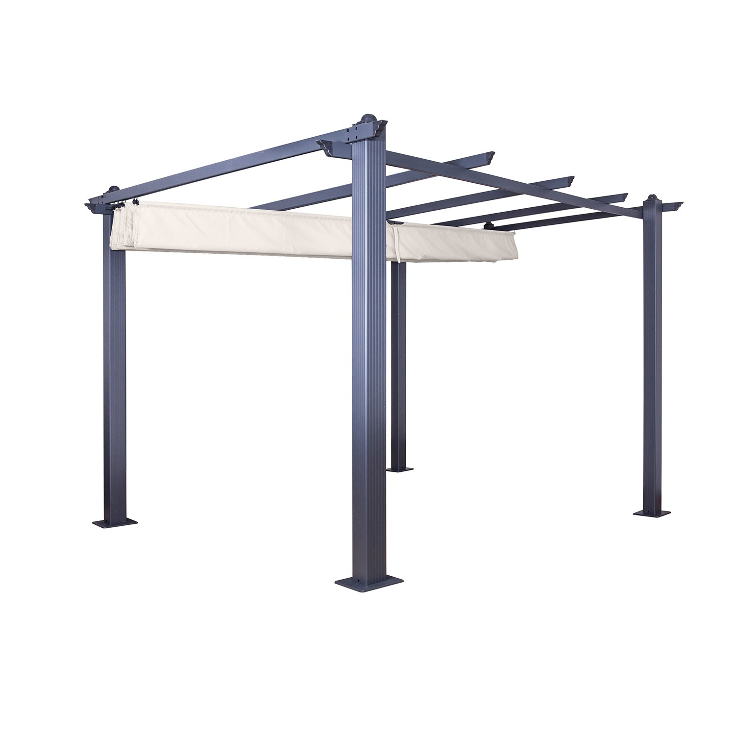 Tonnelle/Pergola aluminium 3x3m toile coulissante rétractable - Gris Ecru - Hero