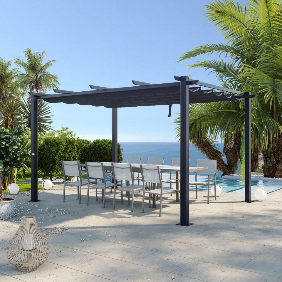 Tonnelle/Pergola aluminium 3x4m toile coulissante rétractable - Gris - OHIO XL