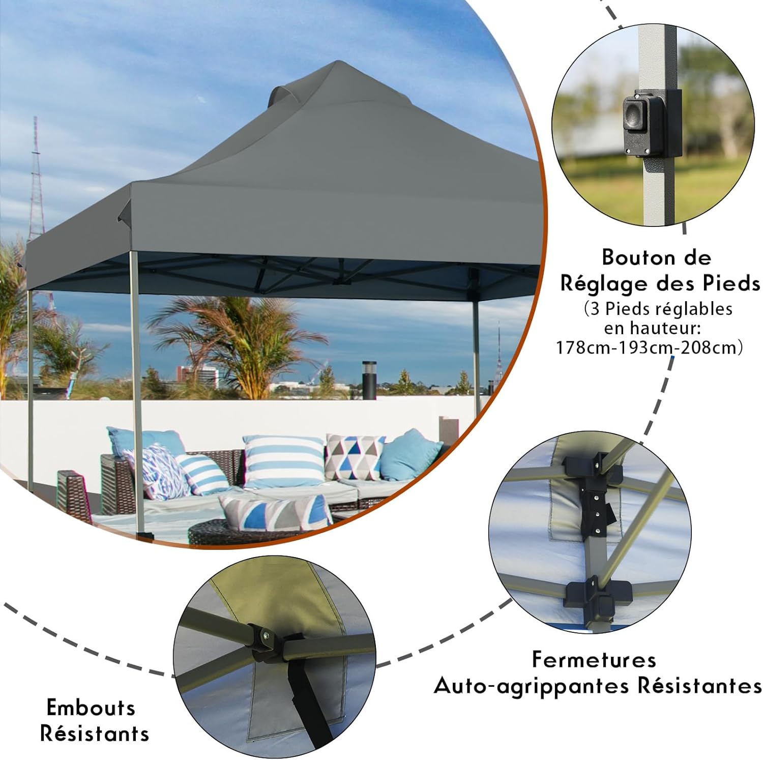 Tonnelle pliant tonnelle de reception tonnelle de jardin exterieur pop-up pieds réglables grissans bâches
