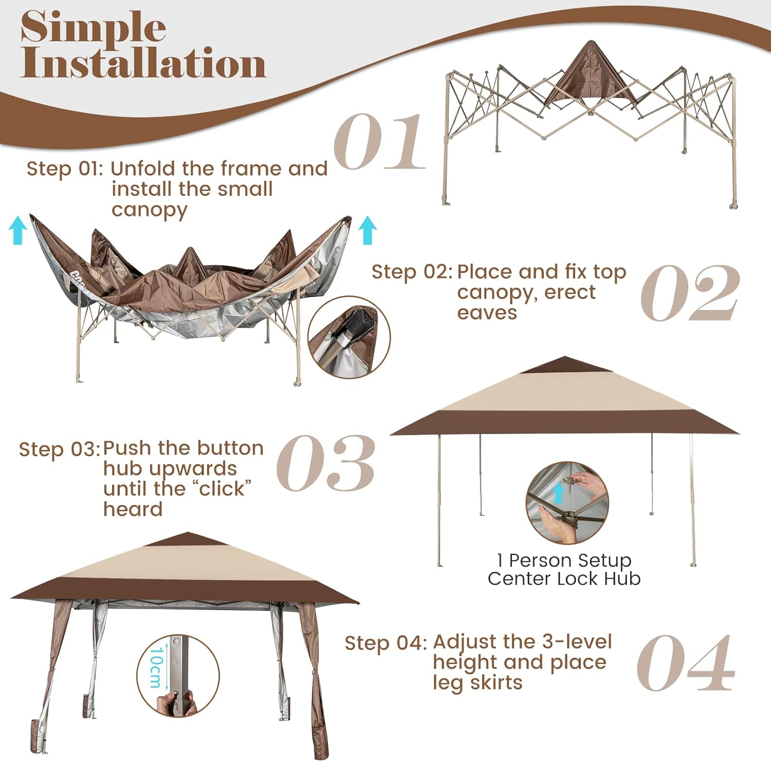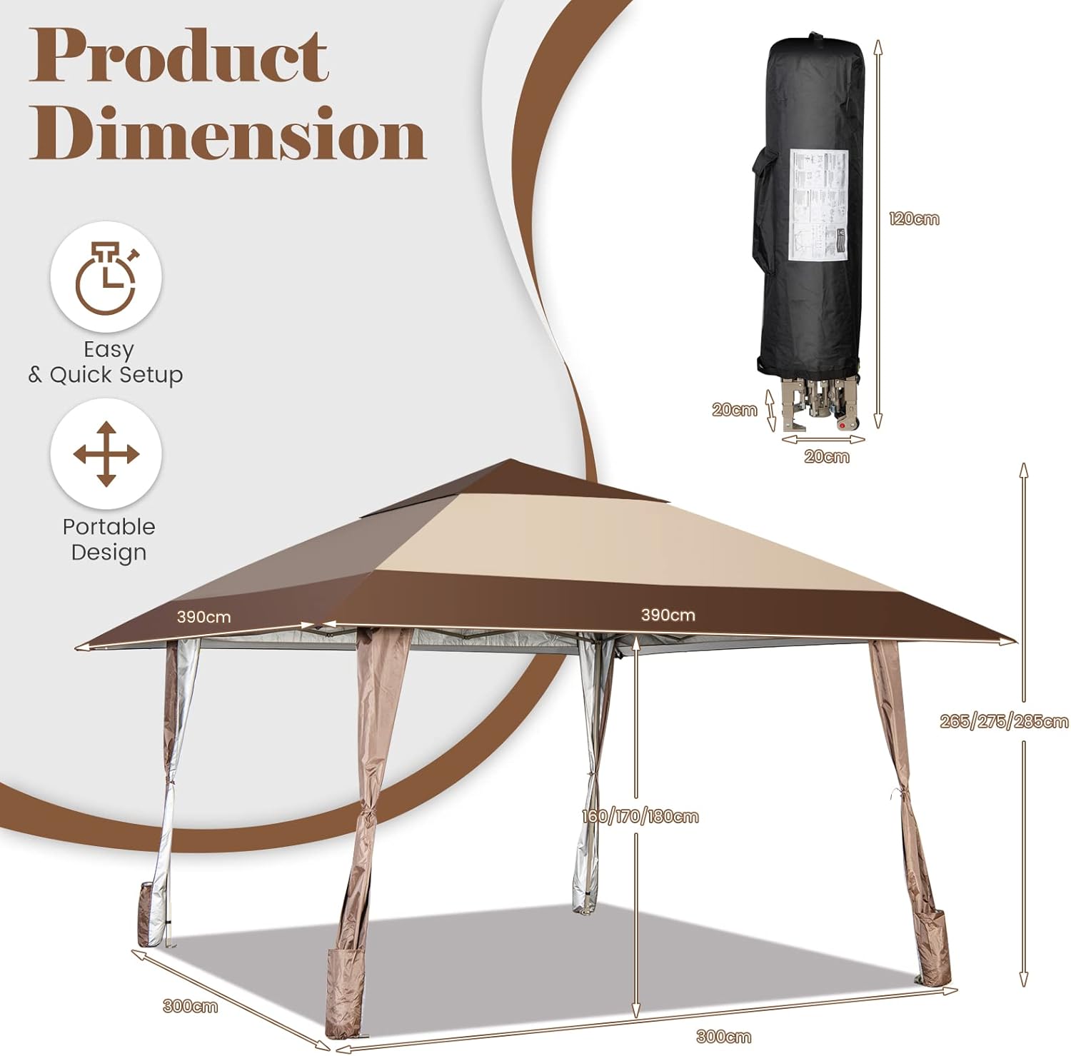 | Libellé | Tonnelle pliante de double toit, gazebo barnum pliable hauteur réglable pour festival, fête, plage marron |