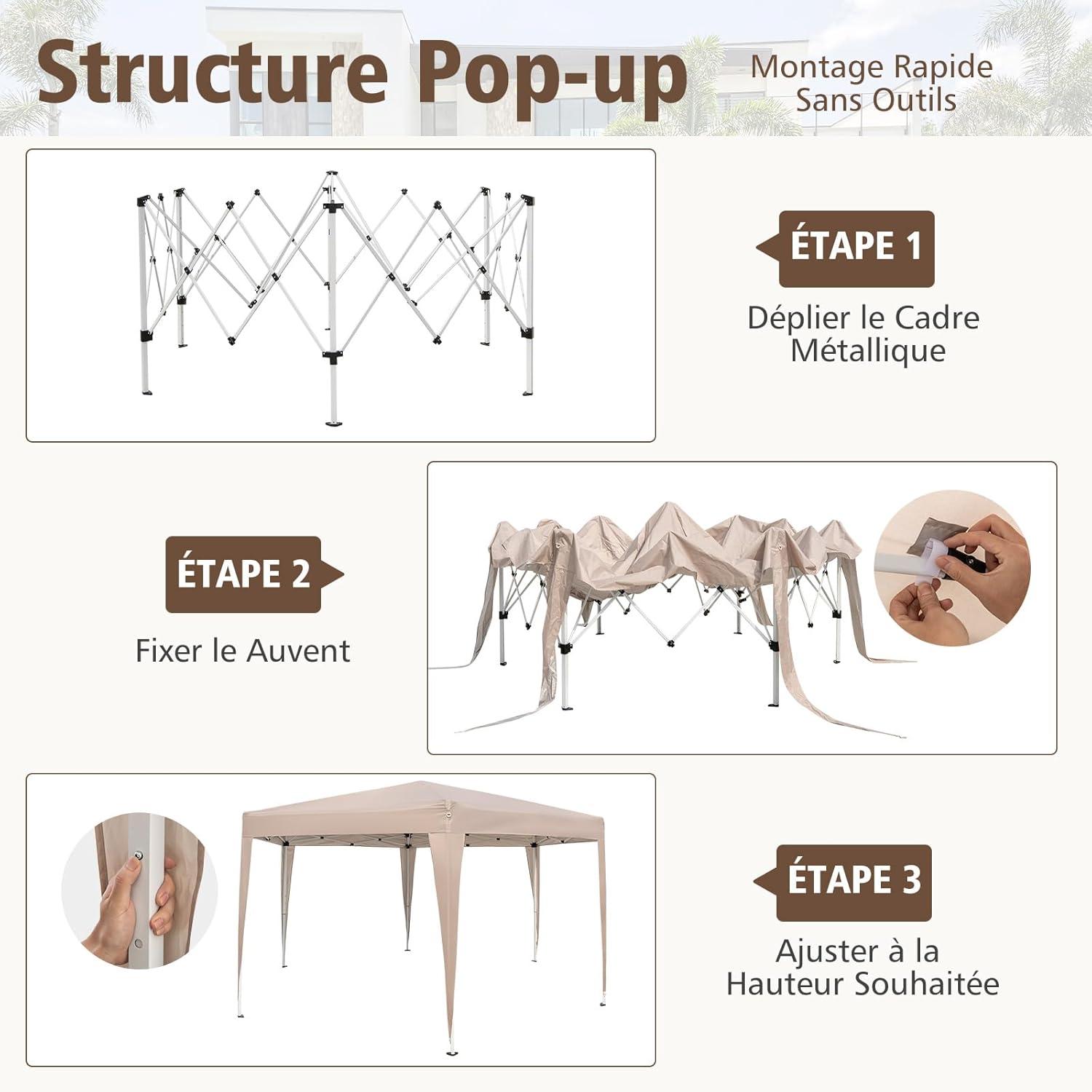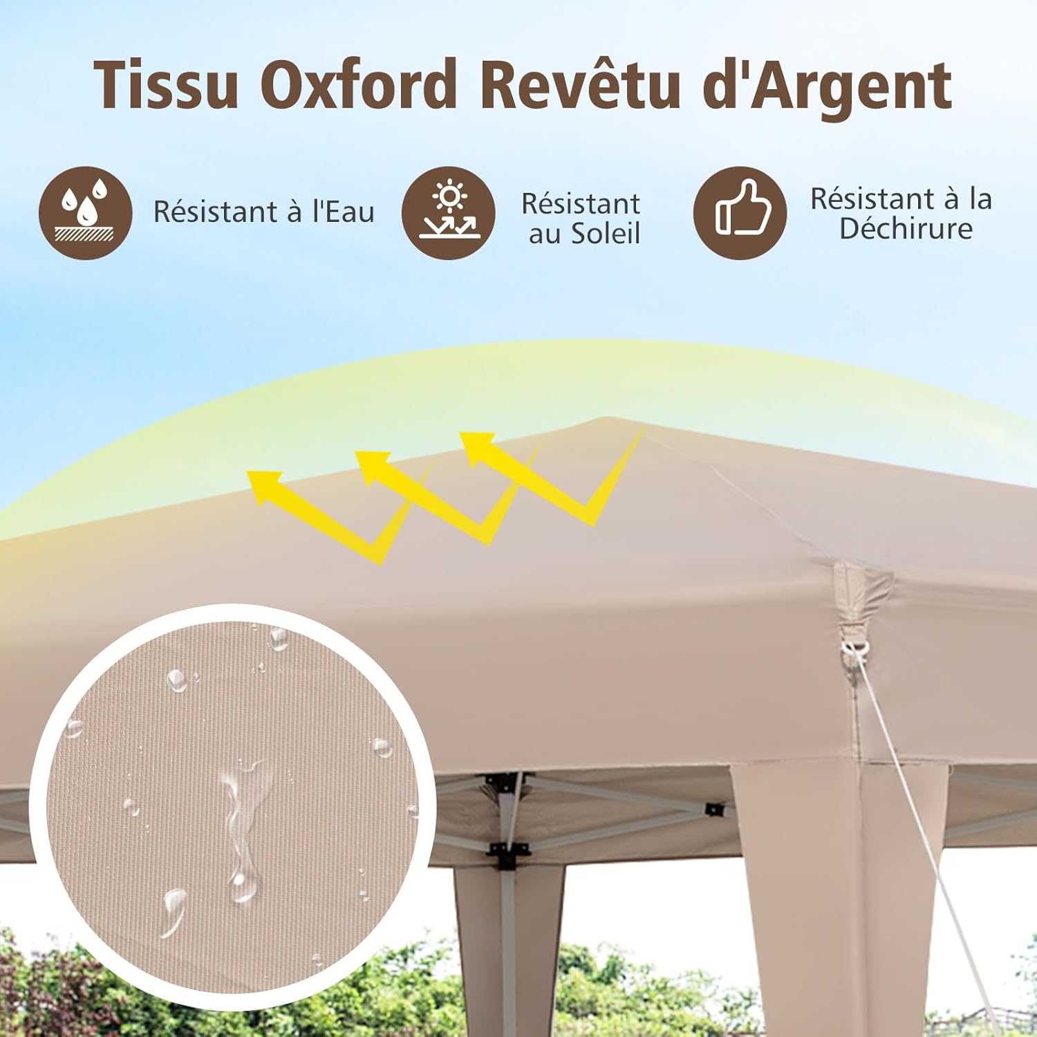 | Libellé | Tonnelle pliante pour 6-8 personnes, tente de jardin exterieur, avec piquets de sol & cordes à vent |