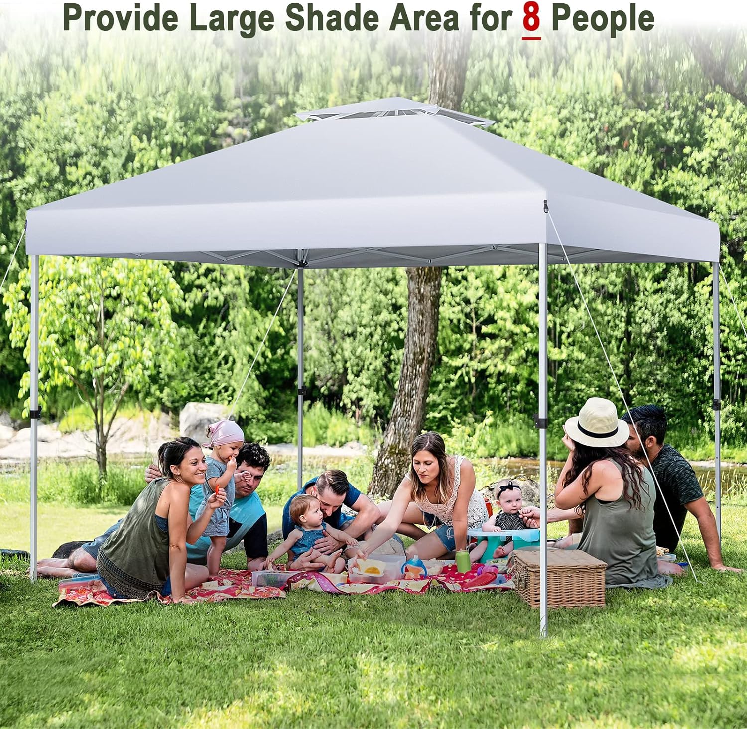 - Bonne Ventilation& Variété d’Usages : Le toit à 2 niveaux assure la ventilation et réduit la chaleur de l’intérieur de la tonnelle, vous offrant une expérience confortable. Avec cette tonnelle de jardin, vous pouvez prendre un bain de soleil à la plage ou vous campez sur la pelouse.