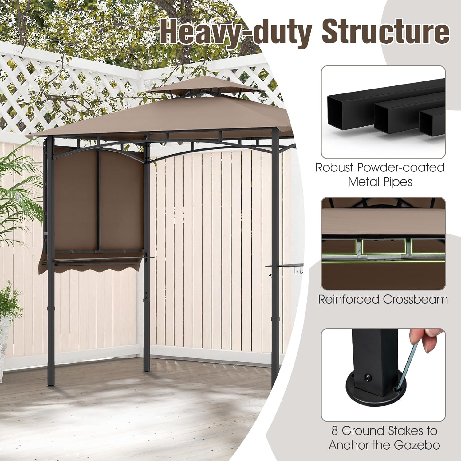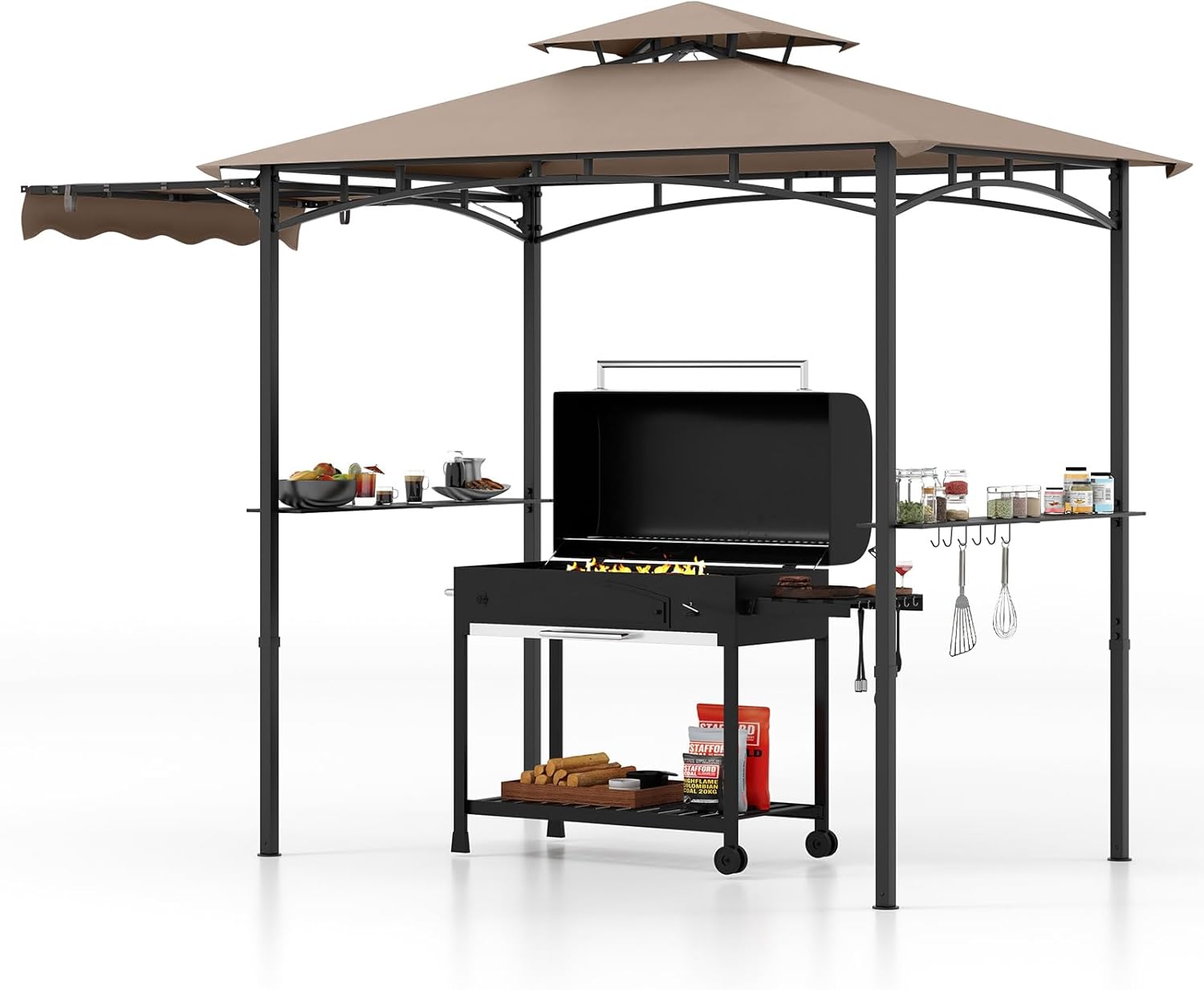 | Libellé | Tonnelle pour barbecue avec auvent latéral, abri barbecue extérieur avec dessus à 2 niveaux (brun) |