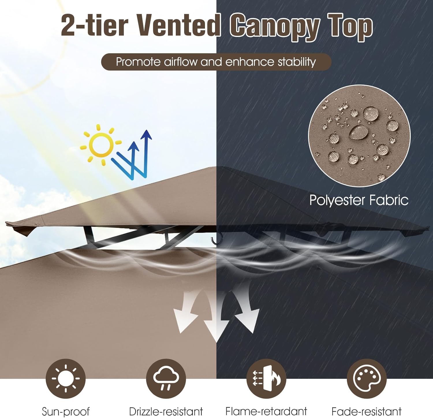- Auvent Ventilé à 2 Niveaux : Fabriqué à partir de tissu polyester, l'auvent de la tonnelle est ignifuge, résistant à la bruine et protège du soleil, garantissant votre sécurité. De plus, l'auvent à 2 niveaux du pavillon de barbecue favorisera la circulation de l'air, facilitera l'évacuation de la fumée et améliorera la stabilité globale.