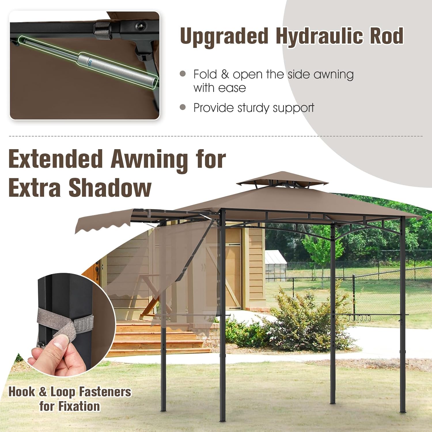 Tonnelle pour barbecue avec auvent latéral, abri barbecue extérieur avec dessus à 2 niveaux (brun)