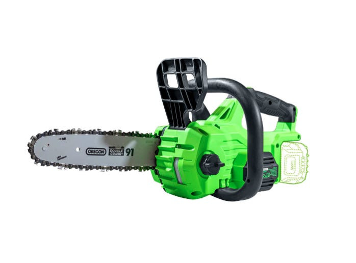 Tronçonneuse sans fil pour l'abattage, l'ébranchage, le sciage et la coupe d'arbres. Moteur sans balai, moins d'entretien et matériel plus léger. Outil équipé d'une poignée pour régler la tension du guide-chaîne et de la chaîne, d'un frein de chaîne (pour arrêter la chaîne lors du recul) et d'un attrape-chaîne (pour l'attraper si elle se casse ou se détache). Système de lubrification automatique de la chaîne et d'un bouton de verrouillage du déclencheur pour éviter tout démarrage accidentel. L'outil se compose d'un guide-chaîne, d'une chaîne et d'une protection pour protéger à la fois le guide-chaîne et la chaîne pendant le transport et le stockage. Caractéristiques techniques : tension : 20 V, batterie : lithium-ion 2Ah/4Ah/6Ah (non incluse), puissance du moteur : 720 W (sans balais), longueur de la barre : 254 mm (10 ?), longueur de coupe : 22 cm, vitesse de la chaîne : 7,8 m/s Pas de chaîne: 9,5 mm (3/8 ?), niveau sonore : 93 dB (A), dimensions (sans barre et chaîne) : 350*225*245 mm, dimensions (avec barre et chaîne) : 600*225*245 mm. Temps de fonctionnement sans charge : 2,0 A h - 17 minutes, 4,0 A h - 34 minutes, 6,0 A h - 51 minutes. Temps de fonctionnement sous charge : 2,0 A h - 5 à 8 minutes, 4,0 A h - 12 à 16 minutes, 6,0 A h - 25 à 30 minutes. Système de lubrification automatique de la chaîne de 130 ml. Poignée souple. Compatible avec les batteries et chargeurs suivants (non inclus) : 0250 ? BATTERIE LITHIUM-ION 2,0 *h 02501 ? BATTERIE LITHIUM-ION 4,0 *h 02502 - BATTERIE LITHIUM-ION SAMSUNG 6.0 Ah 02521 - CHARGEUR 20V 4A 0252 - CHARGEUR HAUTE PERFORMANCE 20V 6A