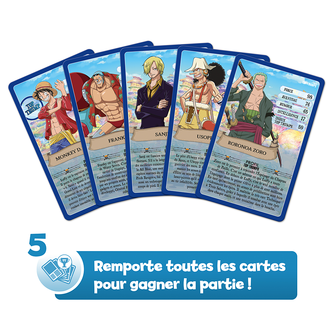 Top Trumps One Piece : compare et remporte toutes les cartes de Luffy à Kaido en passant par Chopper grâce aux caractéristiques de tes personnages préférés !