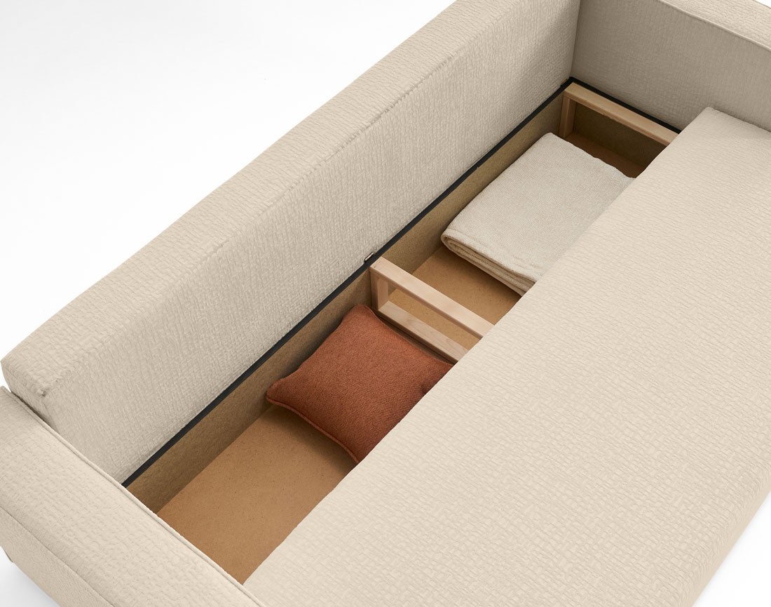Ce beau canapé, outre son esthétisme indiscutable, vous fait également profiter d’une option convertible très appréciable : transformez au besoin votre canapé en lit d’appoint pour accueillir vos invités dans un espace repos confortable. Découvrez aussi le gain de place offert par le canapé Topaze, grâce à son coffre de rangement dissimulé. Vous pourrez alors y ranger votre collection de jeux vidéos, vos plaids, quelques coussins supplémentaires… À votre guise ! Fabriqué en Europe, le canapé Topaze 3 places vous offre son excellente qualité ainsi que son joli design pour rehausser l’allure de votre salon.
