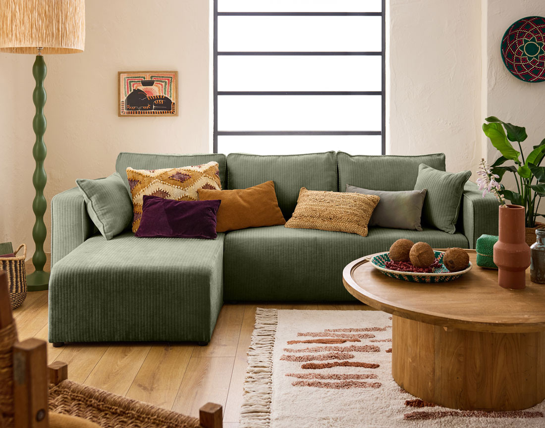 | Plus produit | [Canapé Convertible] Topaze - canapé d'angle réversible - 4 places - convertible avec coffre - en velours côtelé plat combine design moderne et fonctionnalité lit intégré pour vos invités. [Couchage Quotidien] Mécanisme fluide et matelas confortable pour un usage régulier en lit 2 places. [Rangement Pratique] Coffre intégré pour stocker couette, coussins ou linge de lit facilement. [Assise Confortable] Rembourrage moelleux avec soutien ergonomique pour détente optimale. [Montage Facile] Livré en modules avec notice claire, montage rapide sans outil spécialisé. |