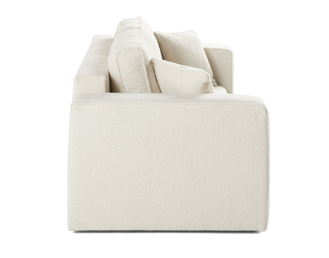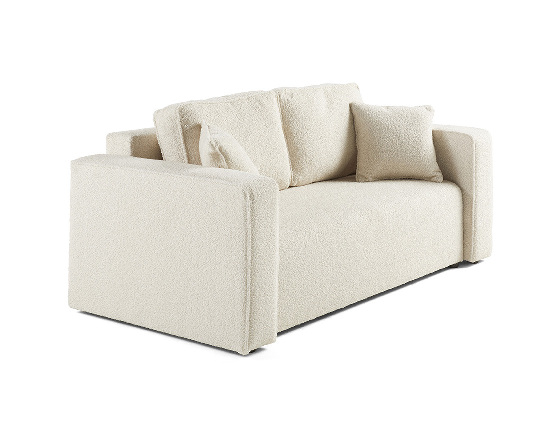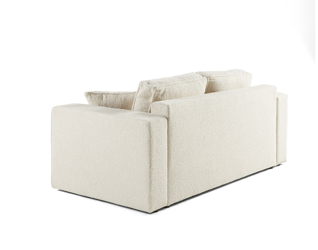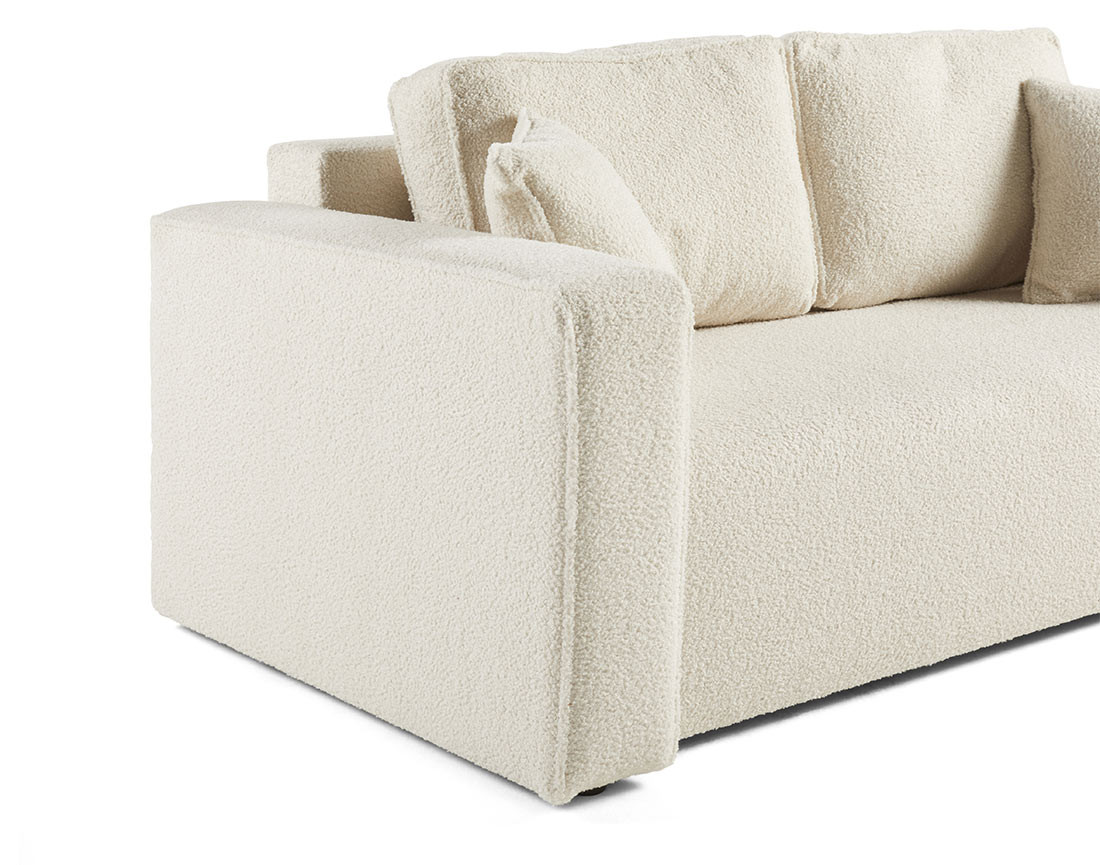 L'un des principaux atouts du canapé Topaze est sans aucun doute son confort exceptionnel. Conçu pour offrir une assise moelleuse et agréable, ce canapé en tissu bouclette donne envie de s’y prélasser durant des heures. Son revêtement texturé est particulièrement doux au toucher avec un côté cocooning pour votre salon. En plus de son aspect chaleureux, le tissu bouclette est très tendance et ajoute une dimension visuelle unique à votre espace de vie. Parfaitement adapté aux petites pièces, le canapé Topaze est idéal pour les appartements, les studios ou les locaux plus restreints où chaque mètre carré compte. Grâce à ses dimensions optimisées, il s’intègre facilement dans n’importe quelle configuration. Son confort est rehaussé par la présence de deux coussins décoratifs inclus.