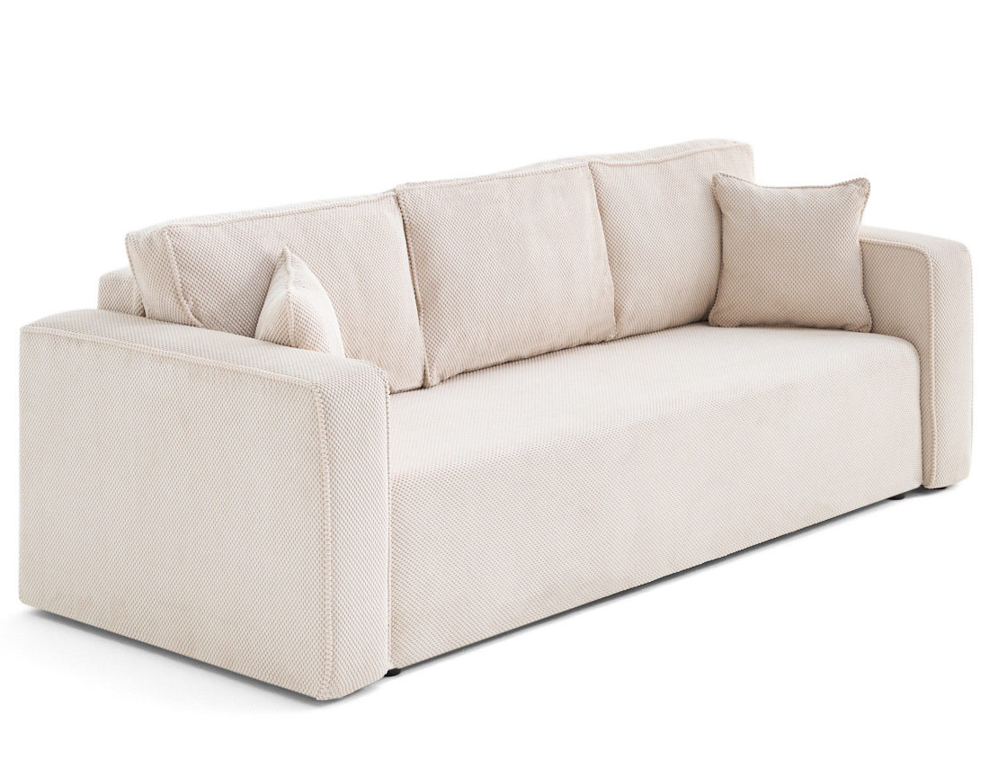 Ce canapé n’est pas seulement un canapé convertible, il cache également un coffre spacieux sous son assise centrale. Pratique pour ranger vos plaids, coussins ou autres affaires, ce rangement astucieux vous permet de garder votre espace de vie propre et organisé. Disponible dans une variété de coloris, comme bleu, rose, beige ou gris foncé, ce modèle s’adapte à tous les styles de décoration et devient vite un élément incontournable de votre salon.