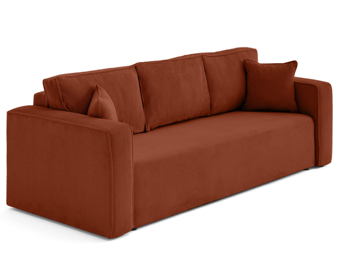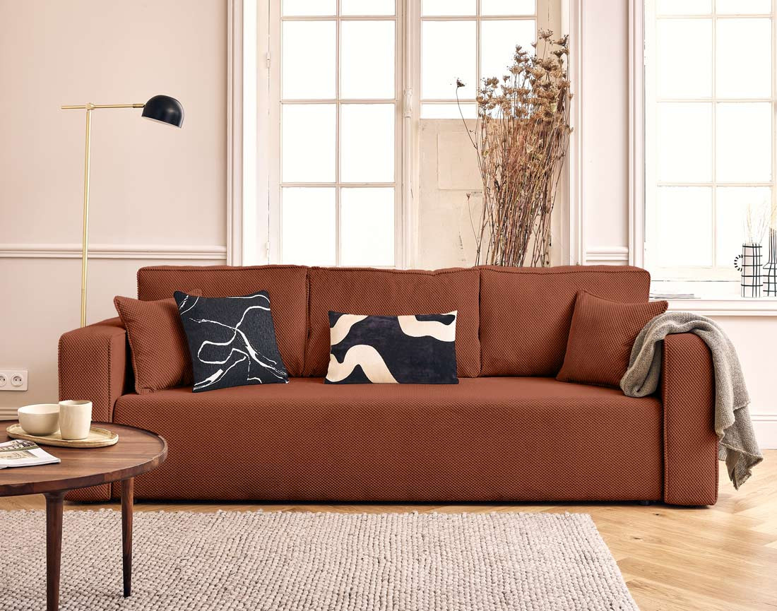 Ce canapé n’est pas seulement un canapé convertible, il cache également un coffre spacieux sous son assise centrale. Pratique pour ranger vos plaids, coussins ou autres affaires, ce rangement astucieux vous permet de garder votre espace de vie propre et organisé. Disponible dans une variété de coloris, comme bleu, rose, beige ou gris foncé, ce modèle s’adapte à tous les styles de décoration et devient vite un élément incontournable de votre salon.