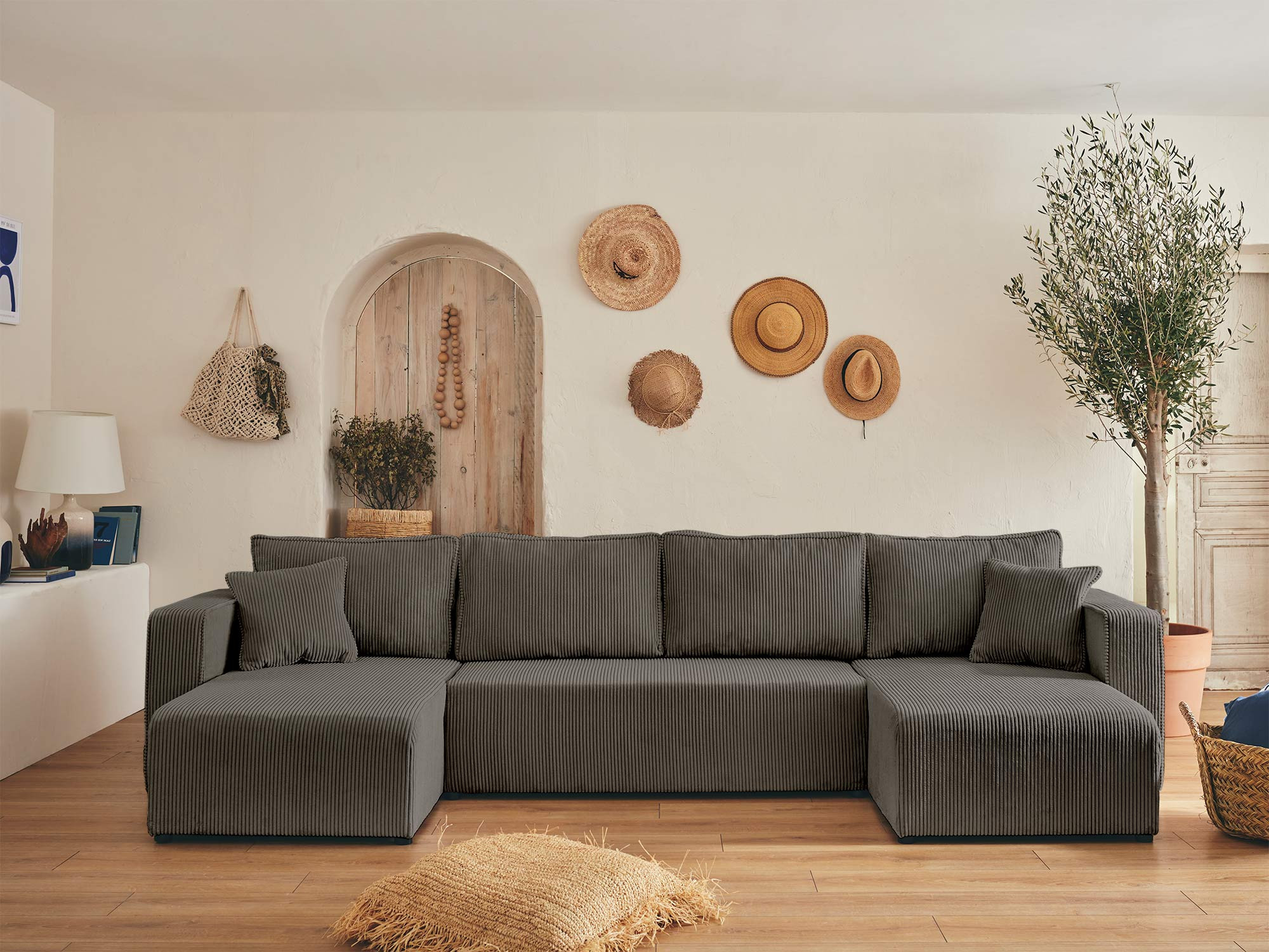 Topaze - canapé panoramique en U - 7 places - convertible avec coffre - en velours côtelé