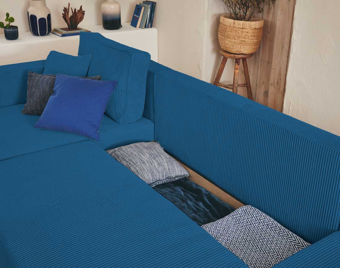 Topaze - canapé panoramique en U - 7 places - convertible avec coffre - en velours côtelé
