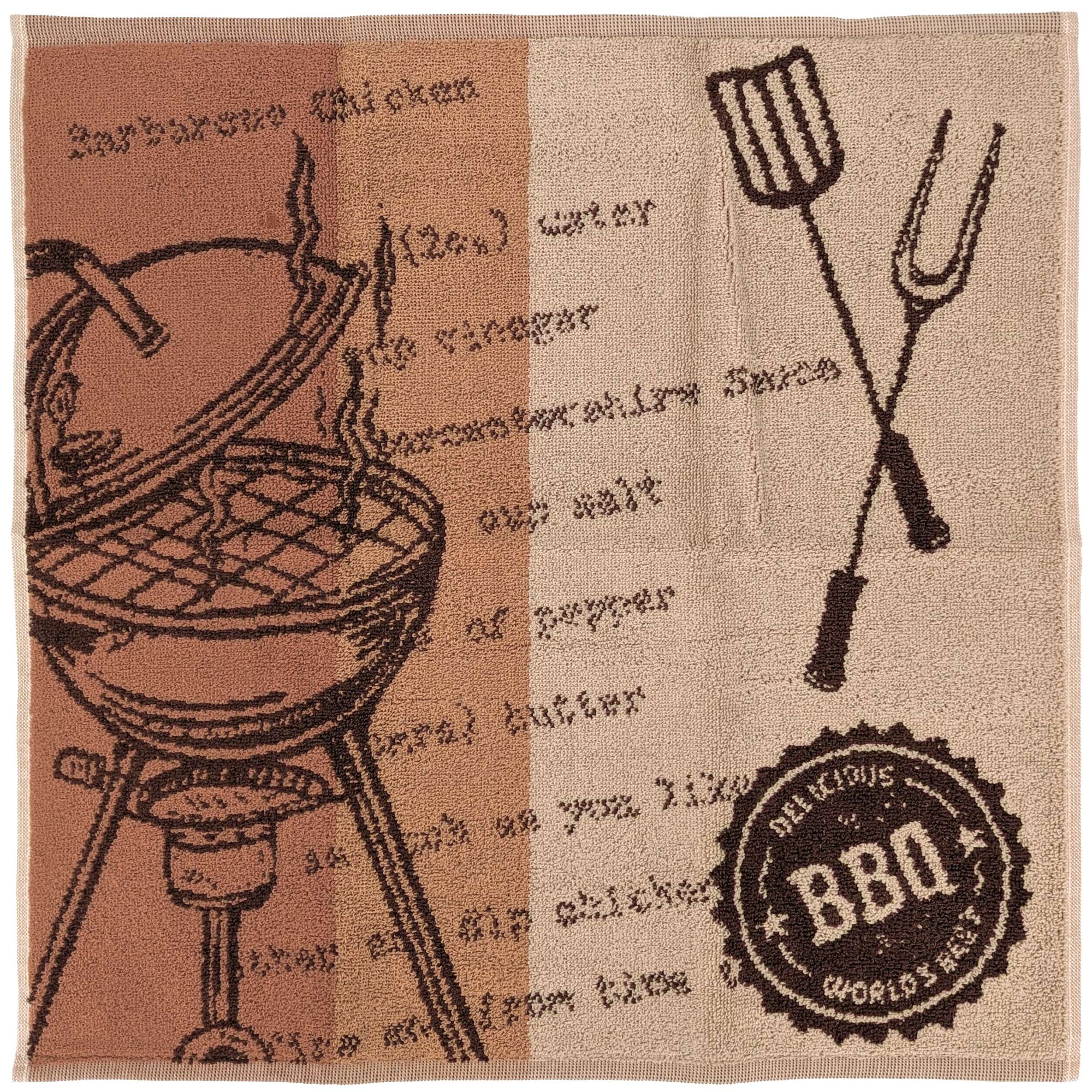Lot de 2 torchons de cuisine pur coton 50x50 cm BBQ beige