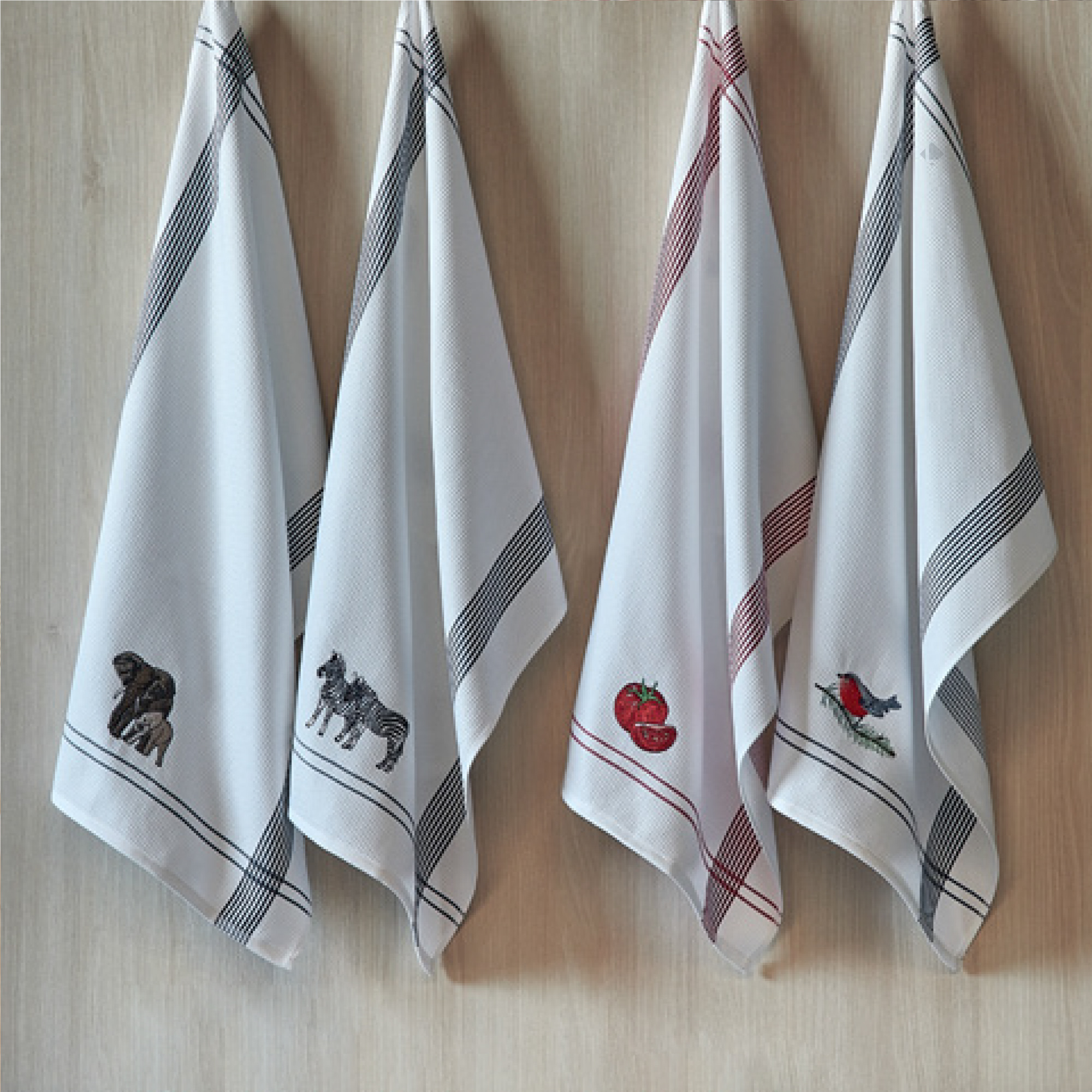La collection de torchons de cuisine "WAFFLE BRODé" allie style et fonctionnalité pour répondre à vos besoins culinaires quotidiens. Fabriqués en 100% coton, ces torchons présentent un aspect éponge nid d'abeille, offrant une texture absorbante et résistante pour toutes vos tâches en cuisine. La couleur principale blanche est rehaussée par des fines rayures de couleurs grises ainsi qu'une broderie représentant un citron, ajoutant une touche de dynamisme et de modernité à votre espace de travail. Ces torchons sont conçus pour être à la fois pratiques et esthétiques, offrant une absorption efficace tout en apportant une note de couleur à votre cuisine. Réalisé en coton 260 g/m2 et disponible également avec broderies, ces torchons vous accompagneront avec style et efficacité.