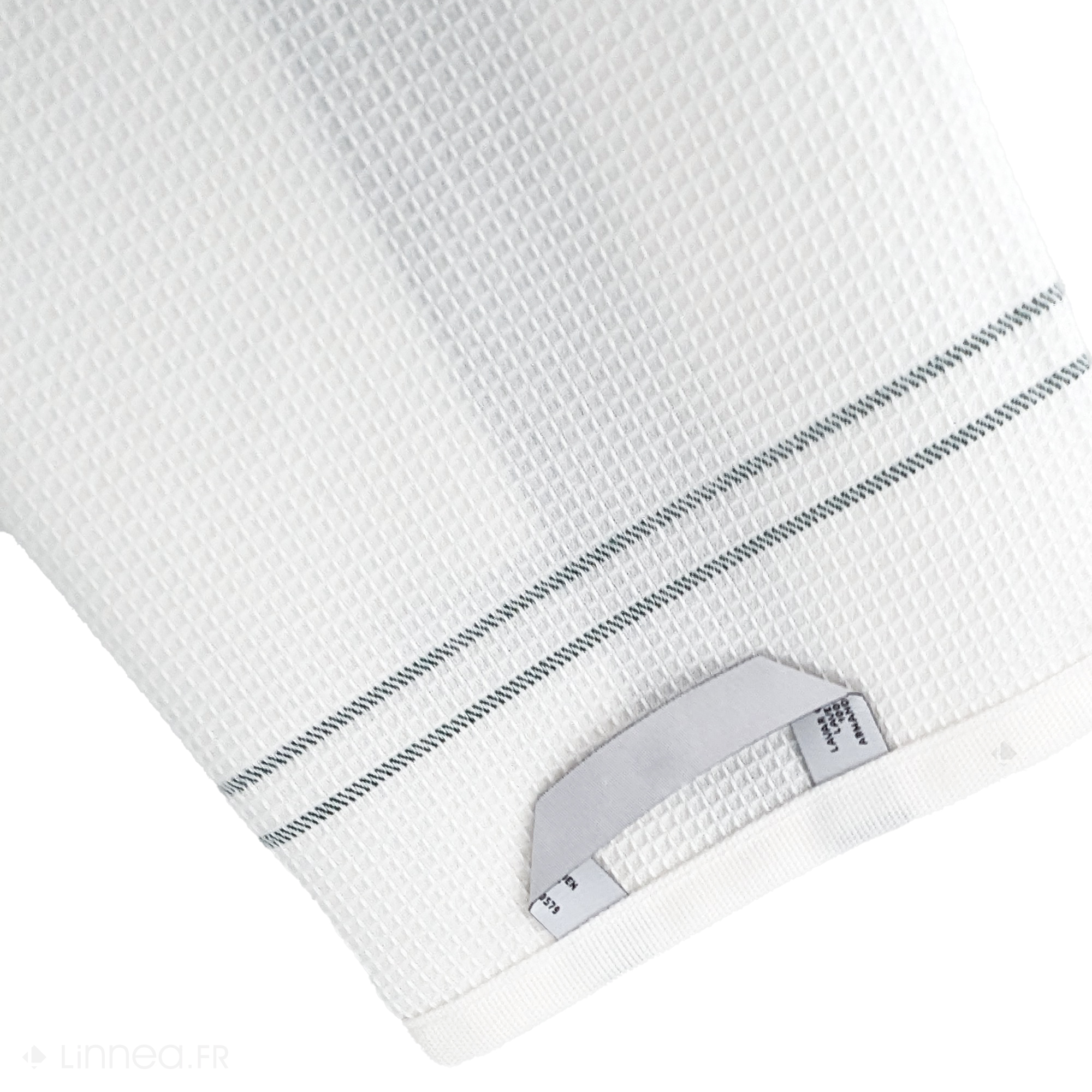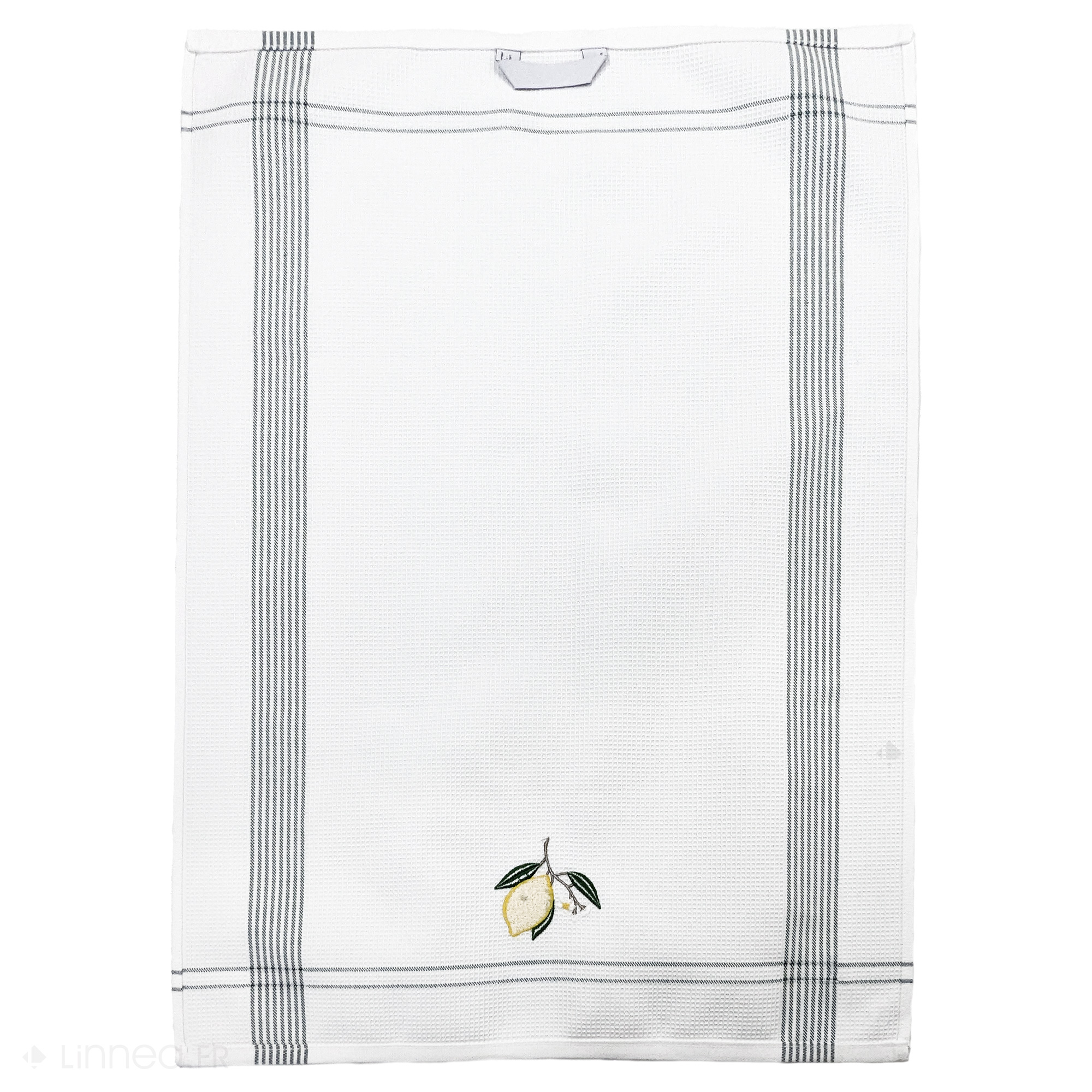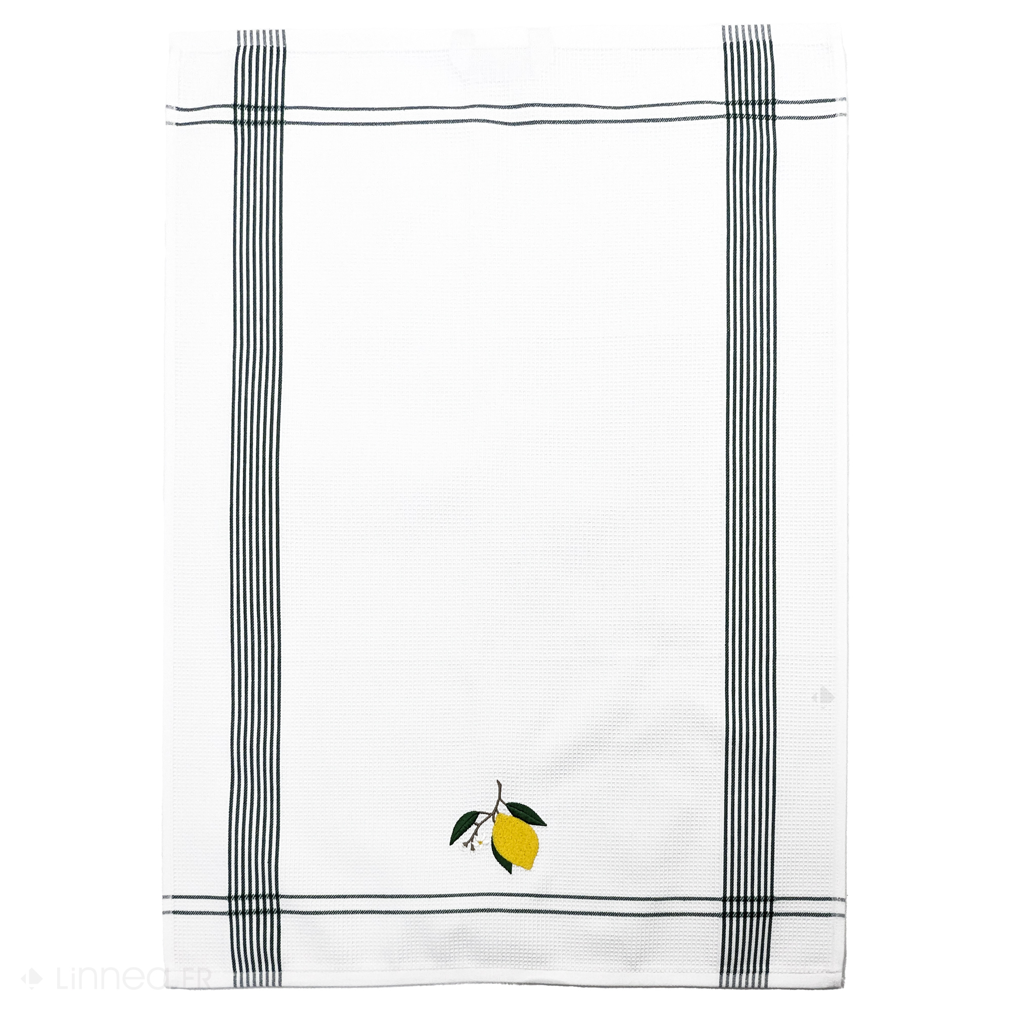 Torchon de cuisine 50x70 cm WAFFLE BRODé 100% coton blanc filet vert avec broderie citron