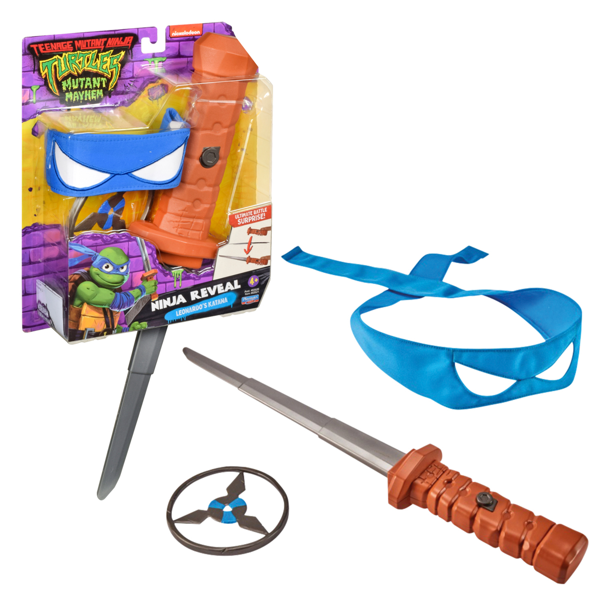 | Plus produit | LICENCE : Produit officiel TORTUES NINJA PRODUIT : Armes de leonardo avec une fonction télescopique. Appuie sur le bouton et avec un mouvement de la main tu es prêt au combat. ACCESSOIRES : Avec son arme signature - Katana , une étoile ninja et le bandeau ninja bleu de Leonardo AGE : Pour les enfants à partir de 4 ans PERSONNAGE : Leonardo COLLECTION : Collectionne toutes les figures et accessoires Tortues Ninja. - |