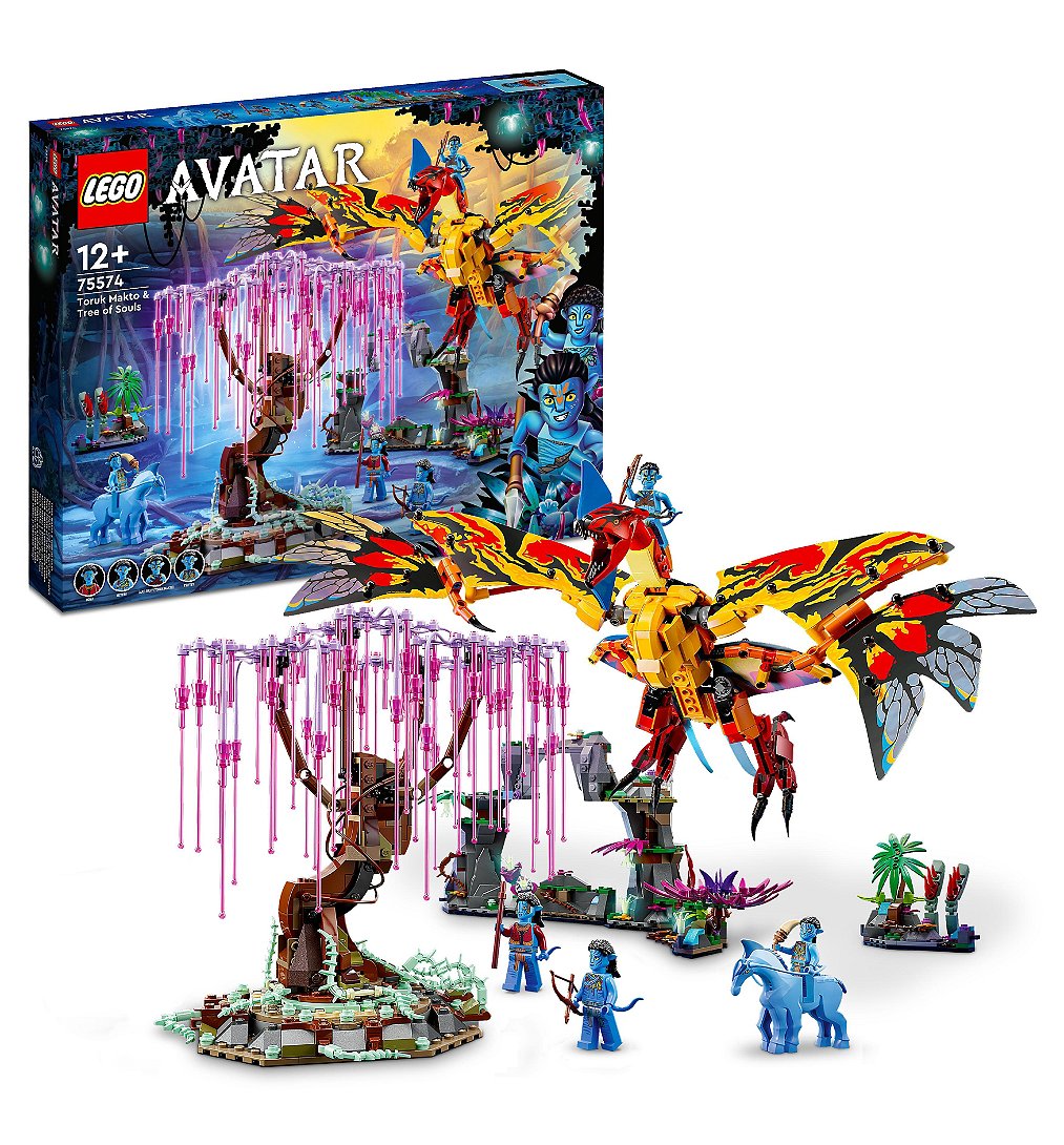 Réunissez vos personnages préférés d'Avatar avec ce jouet de construction LEGO Avatar Toruk Makto et l'Arbre des âmes (75574) pour les fans et les enfants âgés de 12 ans et plus. Ils pourront recréer la scène épique où Jake apprivoise le majestueux Toruk et devient Toruk Mato ! Cet ensemble contient l'Arbre des Âmes à construire et 3 types de décor différents avec des éléments qui brillent dans le noir. Il comprend les minifigurines Avatar de Jake Sully, Neytiri, Mo'at et Tsu'Tey Na'vi, une figurine articulée d'un Toruk avec des ailes flexibles, et une figurine de cheval Equidius. Regardez le Toruk déployer ses ailes flexibles au-dessus de l'Arbre des Âmes ! Les enfants pourront revivre leurs scènes de film préférées ou créer de nouvelles aventures en compagnie de leur famille et de leurs amis. Lorsqu'ils auront fini de le construire, ils pourront l'exposer dans la chambre comme élément de décoration des enfants. Les jouets LEGO Avatar sont conçus pour encourager la construction en groupe. Ils contiennent 3 livrets d'instructions qui permettront aux amis et à la famille de construire différentes parties de l'ensemble en même temps. Remplis de personnages familiers et de créatures et lieux uniques, ils constituent un excellent cadeau d'anniversaire, de Noël ou pour toute occasion pour les fans et les enfants qui aiment le film Avatar de James Cameron et les aventures. Contient 1 212 pièces