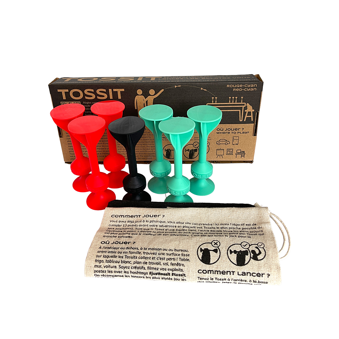 TOSSIT est un jeu d'adresse qui propose un mix entre pétanque et fléchette, se joue à l'intérieur ou à l'extérieur, au sol ou à la verticale._x000D_ Jouez sur toutes les surfaces lisses autour de vous en intérieur comme en extérieur ! Table, sol, plafond, fenêtre, voiture..._x000D_ Le set TOSSIT original qu'il vous faut pour débuter et vous amuser entre potes, en famille, en soirée, ou même au bureau entre deux pauses !