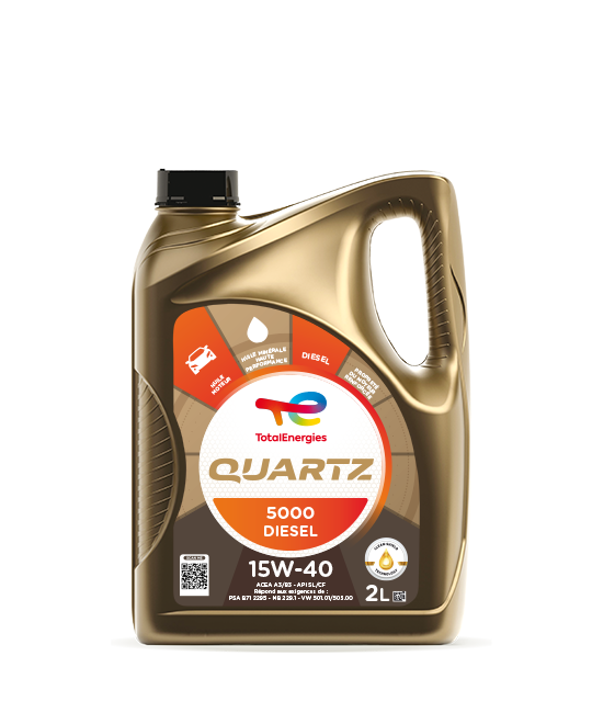 Quartz 5000 Diesel 15W-40 répond à la norme internationale API SL/CF et satisfait les exigences techniques de MERCEDES-BENZ MB 229.1, PSA B71 2295, VOLKSWAGEN VW 501.01/505.00. Cette huile moteur est parfaitement adaptée aux moteurs Diesel de véhicules de tourisme et utilitaires légers et tous les véhicules Diesel sans filtre à particules, de plus de 20 ans.Quartz 5000 Diesel 15W-40 peut être utilisé pour tous types de parcours (ville,route,autoroute) en toutes saisons, possède de remarquables propriétés anticorrosion, antirouille, antimousse et un excellent niveau de résistance aux hautes températures.TotalEnergies Quartz avec la technologie Clean-Shield maintient les moteurs propres à long terme grâce à des molécules détergentes avancées conçues pour capturer et isoler les saletés telles que les boues et la suie.