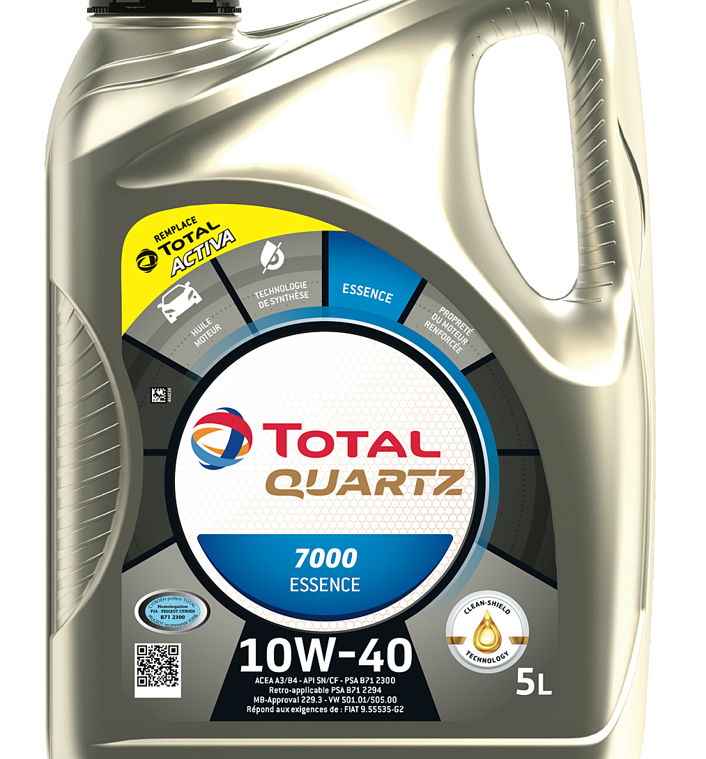 Quartz 7000 essence 10W-40 répond aux normes internationales ACEA A3/B4 ; API SN/CF, est homologué PSA B71 2300 (rétro applicable PSA B71 2294),VOLKSWAGEN VW50.01/505.00 et satisfait les exigences techniques de MERCEDES-BENZ MB 229.3, FIAT 9.55535-G2. Semi-synthéthique, Quartz 7000 essence 10W-40 est parfaitement adapté aux motorisations turbo-compressées et multisoupapes et convient à tous les véhicules essence sans filtre à particules, commercialisés avant les années 2000. Cette huile moteur a été développée pour les moteurs essence de véhicules de tourisme et utilitaires légers et pour les moteurs équipés de pots catalytiques. Quartz 7000 essence 10W-40 est parfaitement adapté à une conduite normale sur route (peu de ville), assure une protection durable des pièces les plus sensibles du moteur contre l’usure (usure distribution, usure segment, piston, chemise) et garantit une bonne propreté du moteur. TotalEnergies Quartz avec la technologie Clean-Shield maintient les moteurs propres à long terme grâce à des molécules détergentes avancées conçues pour capturer et isoler les saletés telles que les boues et la suie.