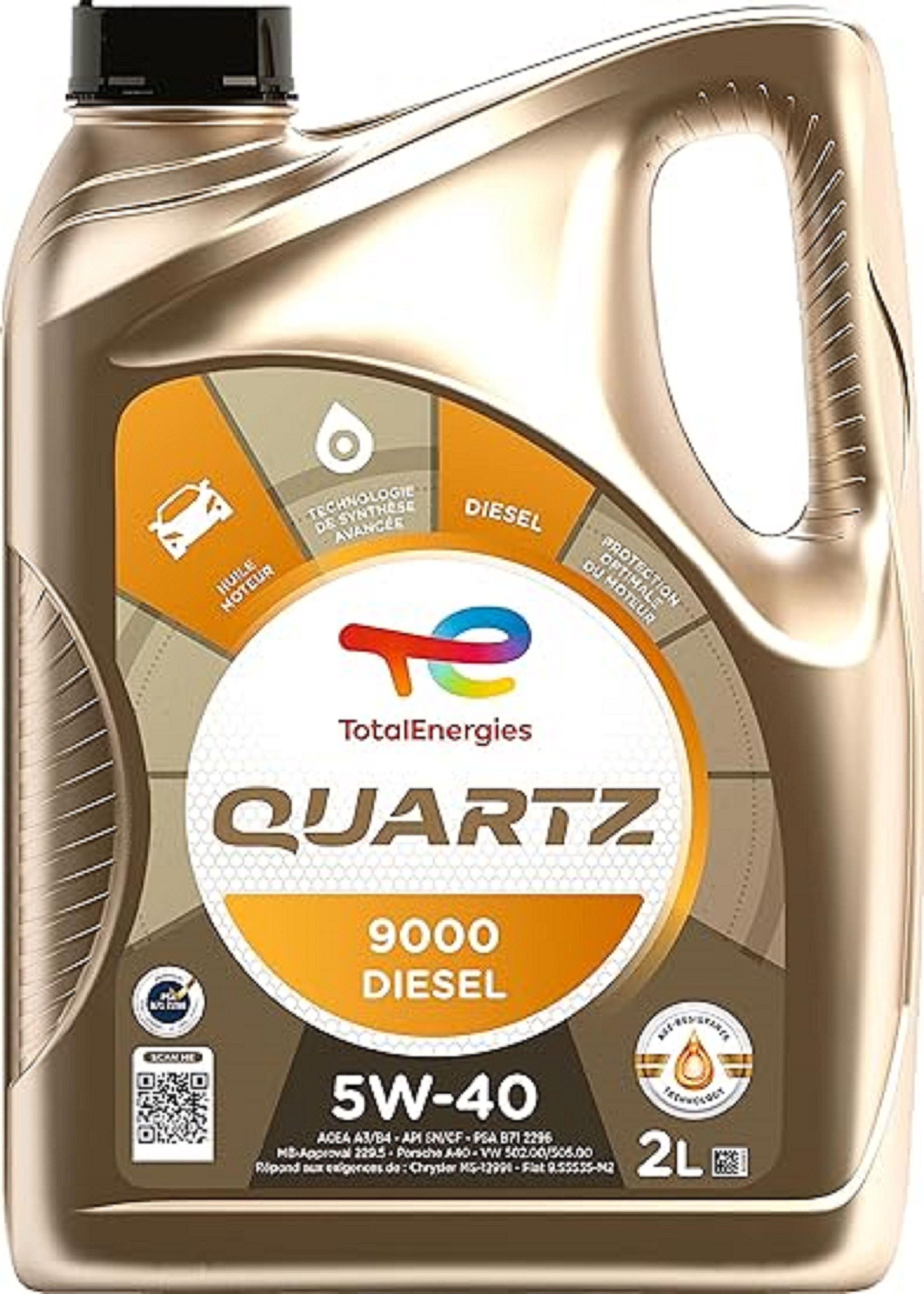 | Libellé | TotalEnergies Quartz 9000 Diesel 5W-40, Huile moteur, 2 litres |