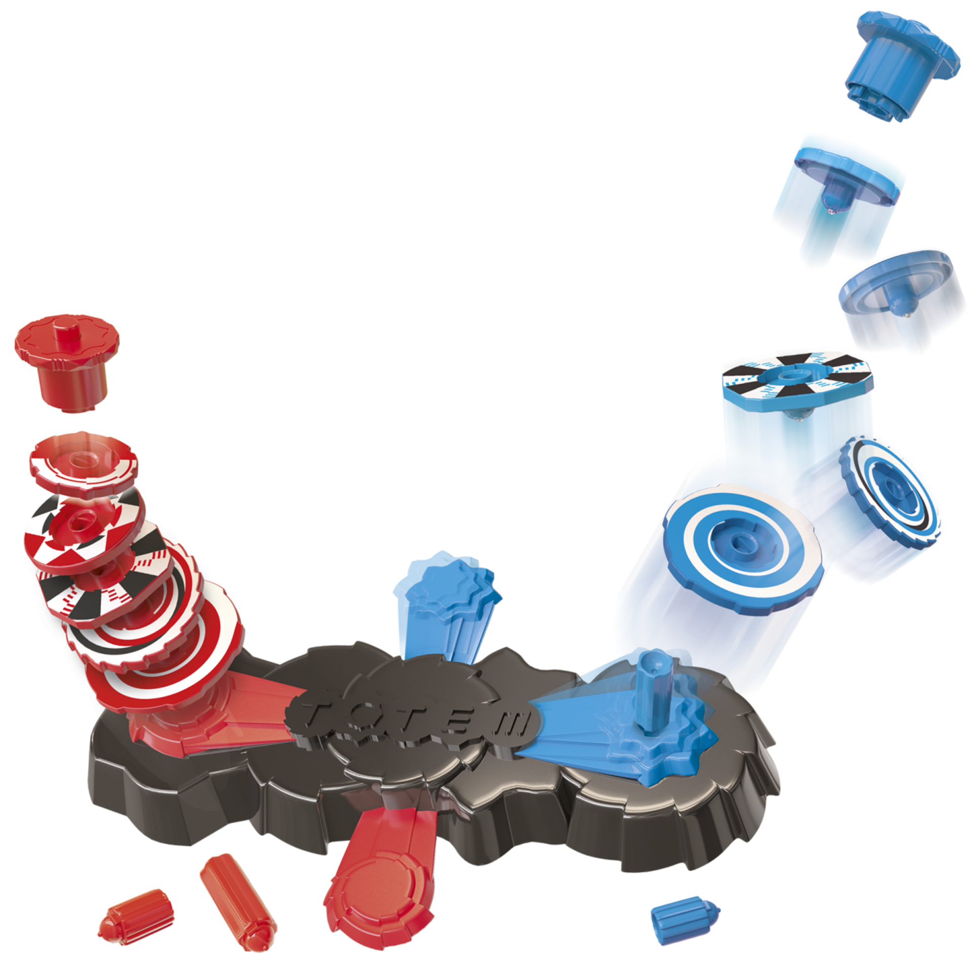 Sois le premier à empiler les 5 toupies à laide de ton lanceur.