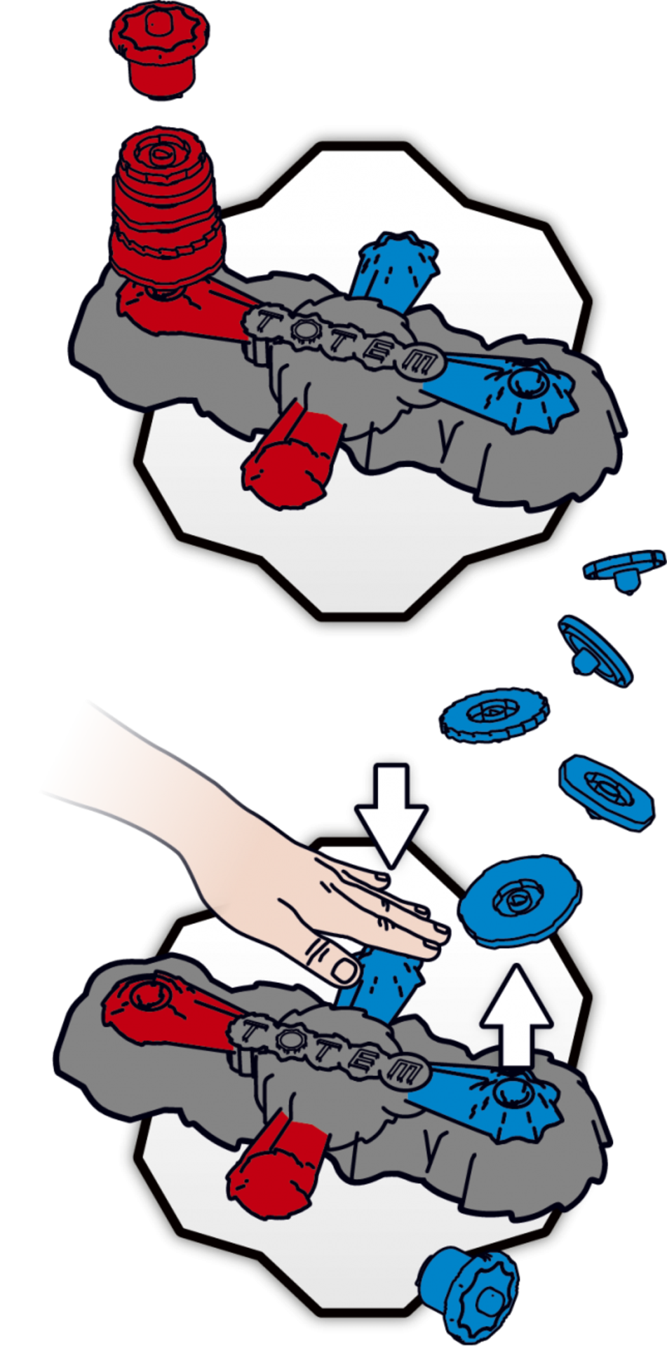 Tu peux même ajouter de la hauteur à tes toupies grâce aux supports pour rendre le challenge encore plus difficile !