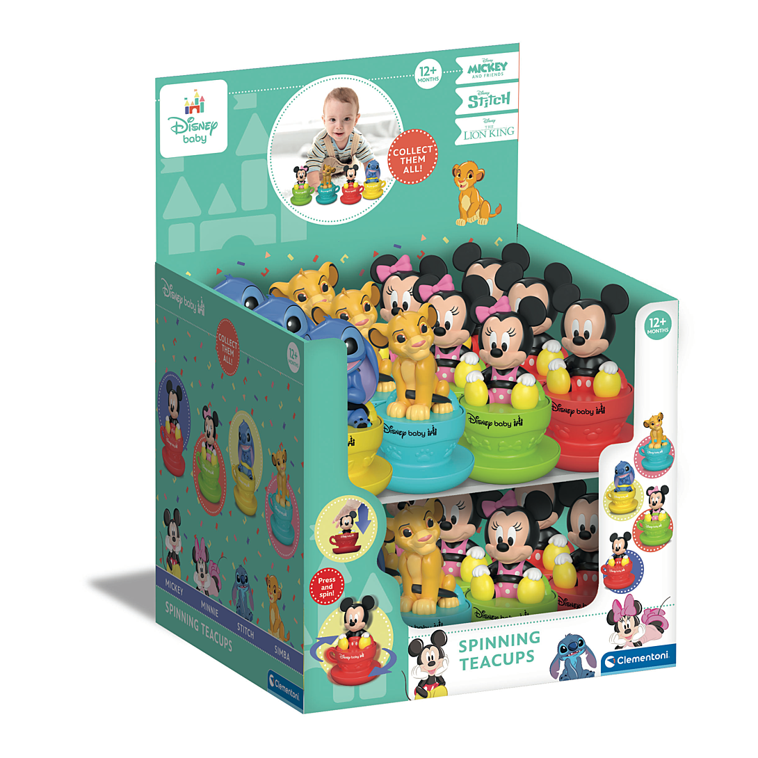 • Les tasses colorées de Mickey, Minnie, Donald et Stitch deviennent d’amusantes toupies. • L’iconique manège des tasses de Disneyland devient un jeu se déclinant en quatre versions amusantes ! • Idéales pour faire jouer l’enfant en l’aidant à développer sa perception de l’espace et sa dextérité.