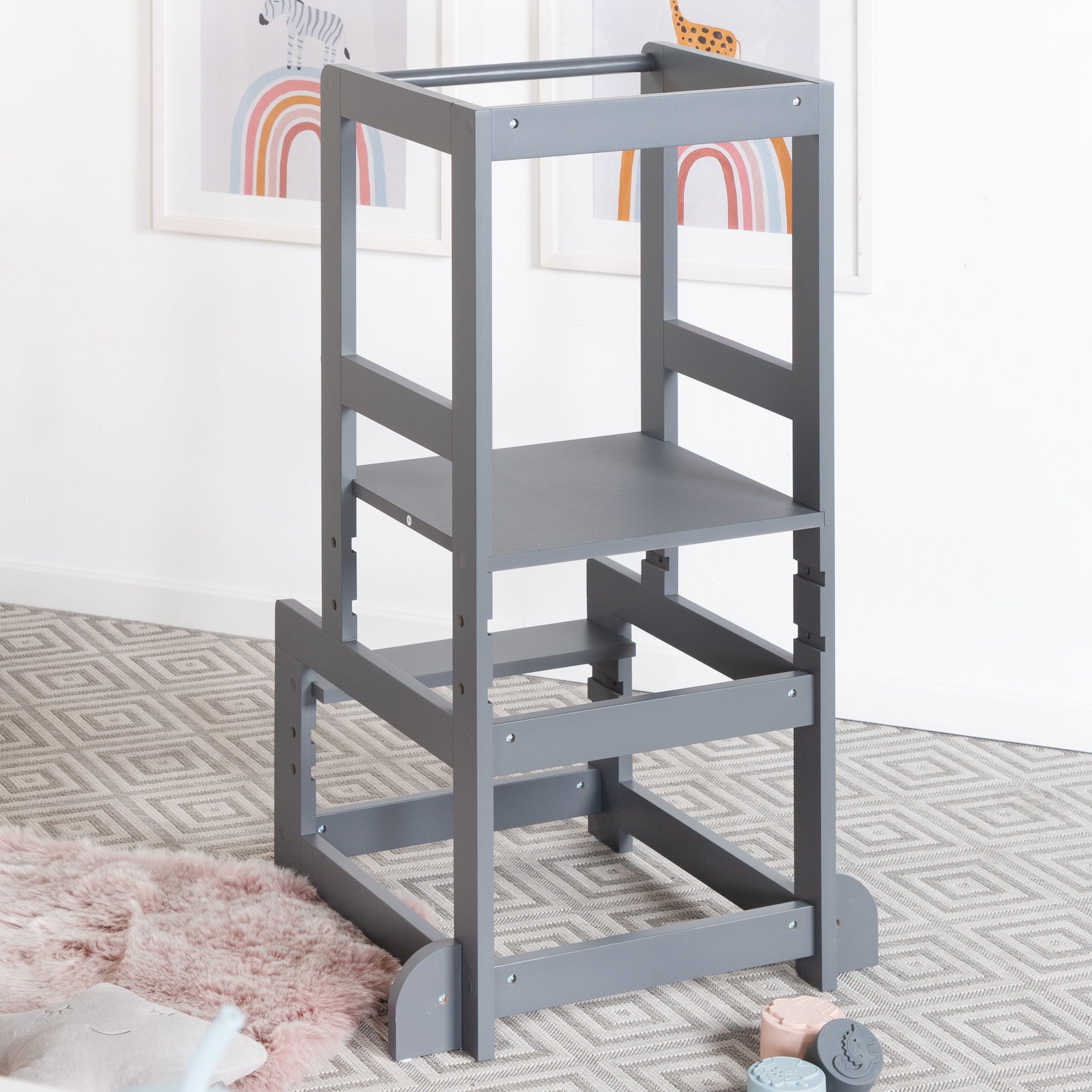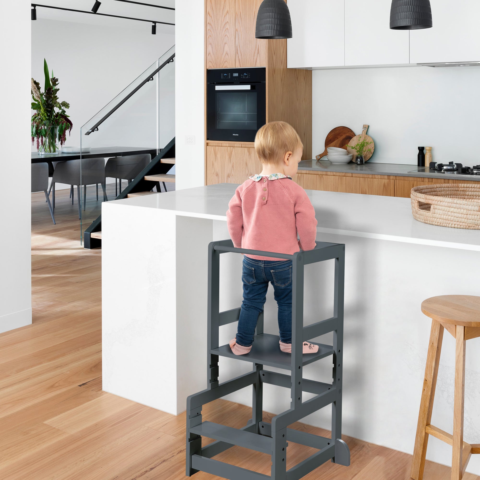 Tour d'Apprentissage Anthracite, Marchepied Sûr Pour Les Enfants, Idéal Comme Aide De Cuisine, Supporte J