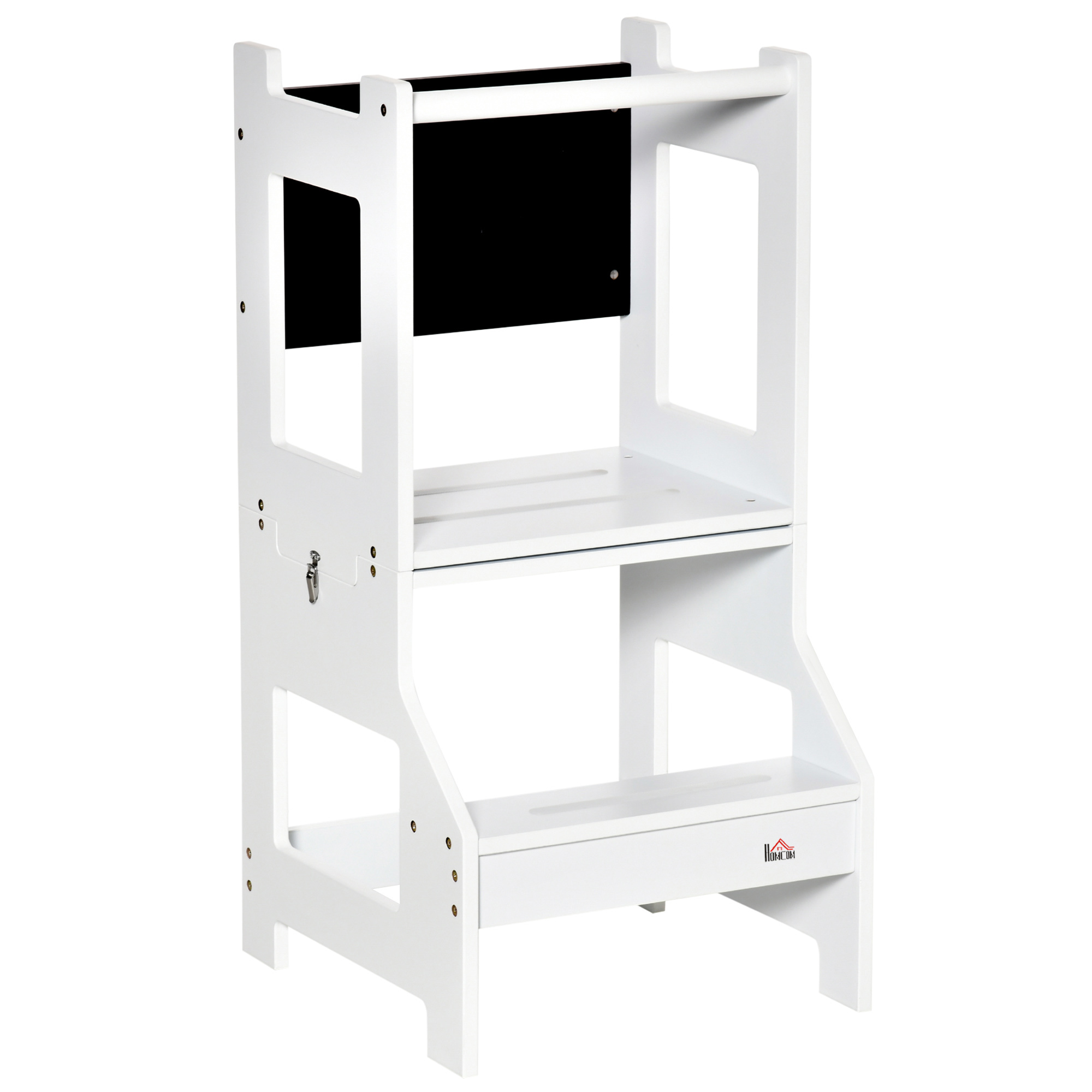 | Libellé | Tour d'apprentissage tableau à craie tabouret bureau 3 en 1 - marches antidérapantes, barreau, hauts rebords de sécurité - MDF blanc noir |