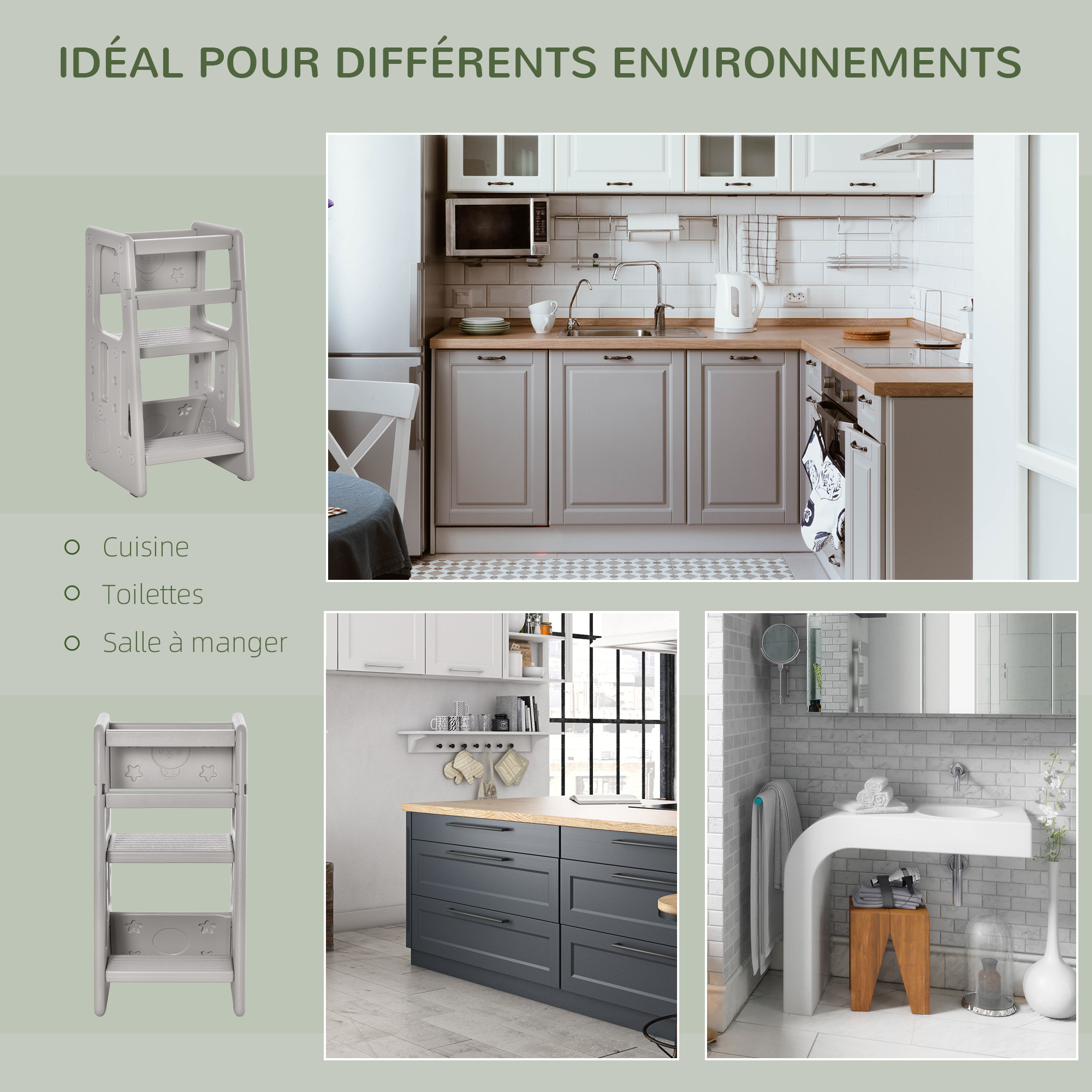 Tour d'apprentissage tour d'observation enfant 18 mois-5 ans hauteur réglable 3 niveaux HDPE gris