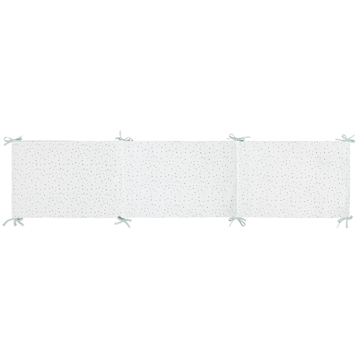 Tour de lit en velours de la collection Disney Mickey Little One par Babycalin. Une collection aux allures vintages avec ses imprimés étoilés gris anthracite et ses détails vert d'eau.Pleine de douceur, elle donnera à la chambre de bébé une atmosphère très zen.