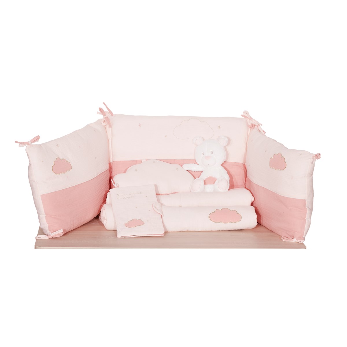 Tour de lit Lily. Ce tour de lit déhoussable Lily, s'adapte au lit 120x60 ou 140x70.La gamme Lily de Sauthon se décline en 3 couleurs. Vous serez séduit par la douceur de la mousseline de coton gaufré, la finesse des broderies et la sobriété du dessin pour créer un tour de lit qui apportera une touche bohème chic à la chambre de votre enfant. Une collection tout en raffinement et en simplicité qui offrira à bébé un cocon de sérénité dès ses premiers instants. Certifié Oeko-tex Standard 100, ce label garantit l'absence de substance nocive ou irritante pour la peau.