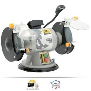Touret Meule/Meule Pivotant - Doté d'un moteur asynchrone silencieux de 350W. - Equipé d'une meule sèche A36 Ø150mm et d'une autre meule A60 Ø150mm. - Le dressoir incorporé avec support permet de rectifier les meules après affûtage pour maintenir leur performance optimale. - L'interrupteur à manque de tension assure la sécurité de l'utilisateur en cas de panne de courant inattendue. - Les écrans pare-étincelle en polycarbonate réglables; avec loupe intégrée, offrent une protection supplémentaire lors de l'utilisation. - La base pivotante gauche et droite à 180° avec 2 verrous sans clé faiclite le meulage de pièces encombrantes. - L'éclairage LED orientable sur la zone de travail garantit une visibilité optimale, de plus le support d'outils pré-tracé facilite le bon positionnement de l'outil à affuter. Livré avec deux meules. - Garantie 5 ans. - Réparabilité 10 ans.
